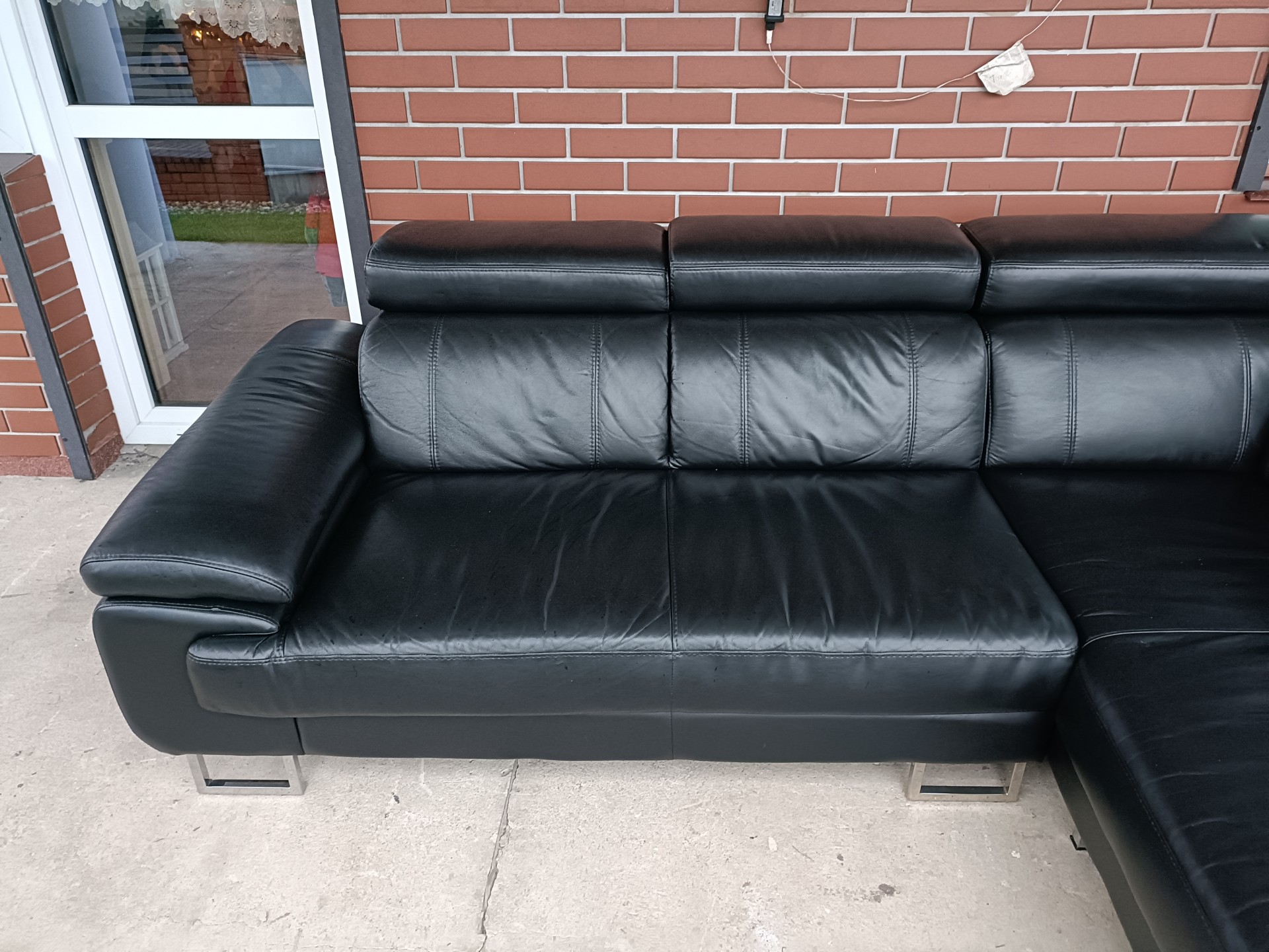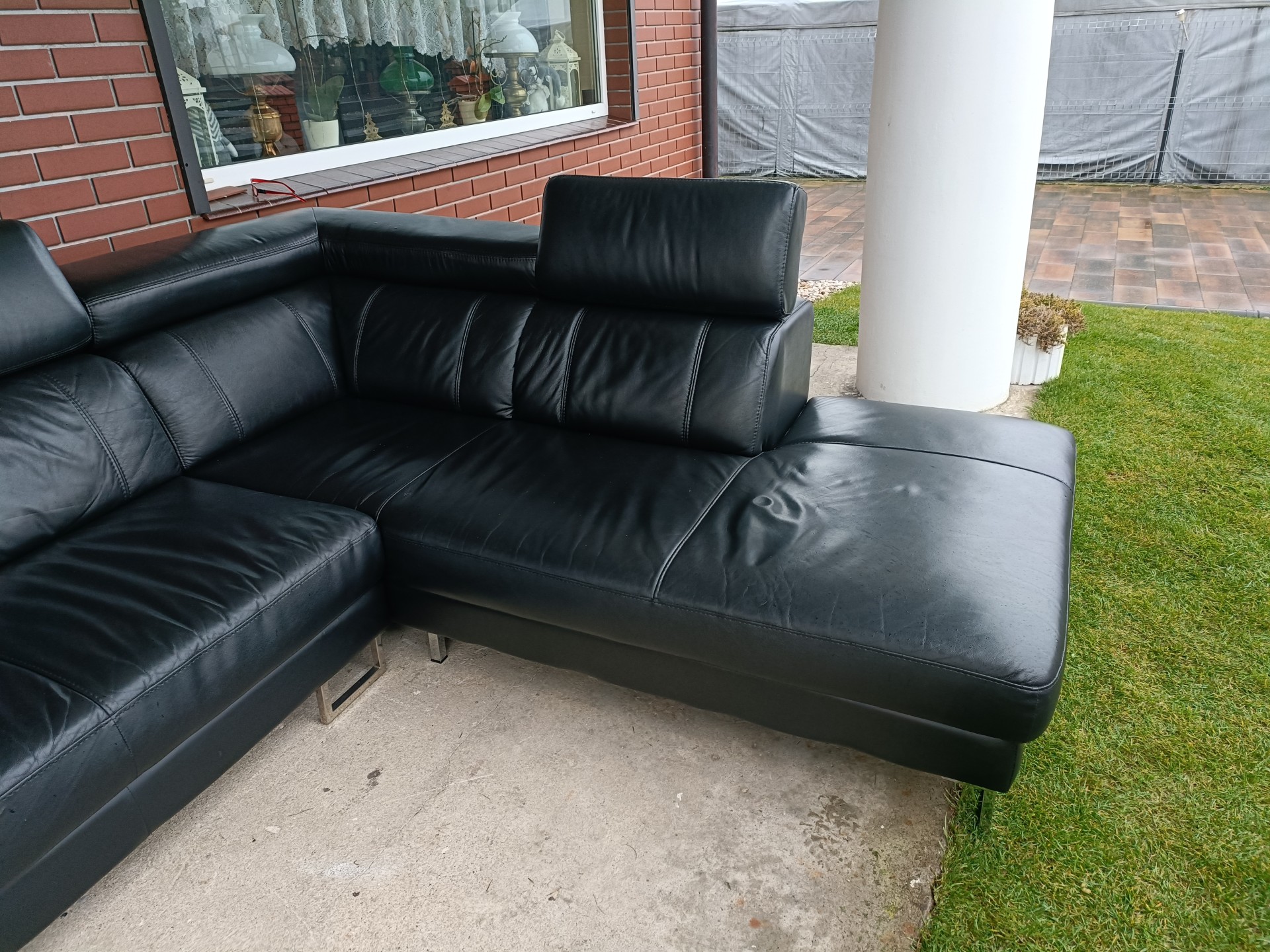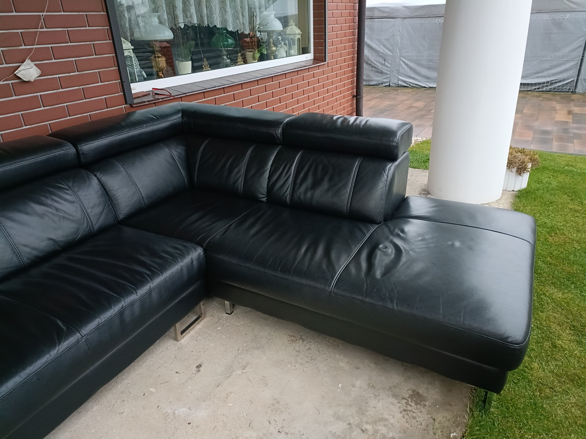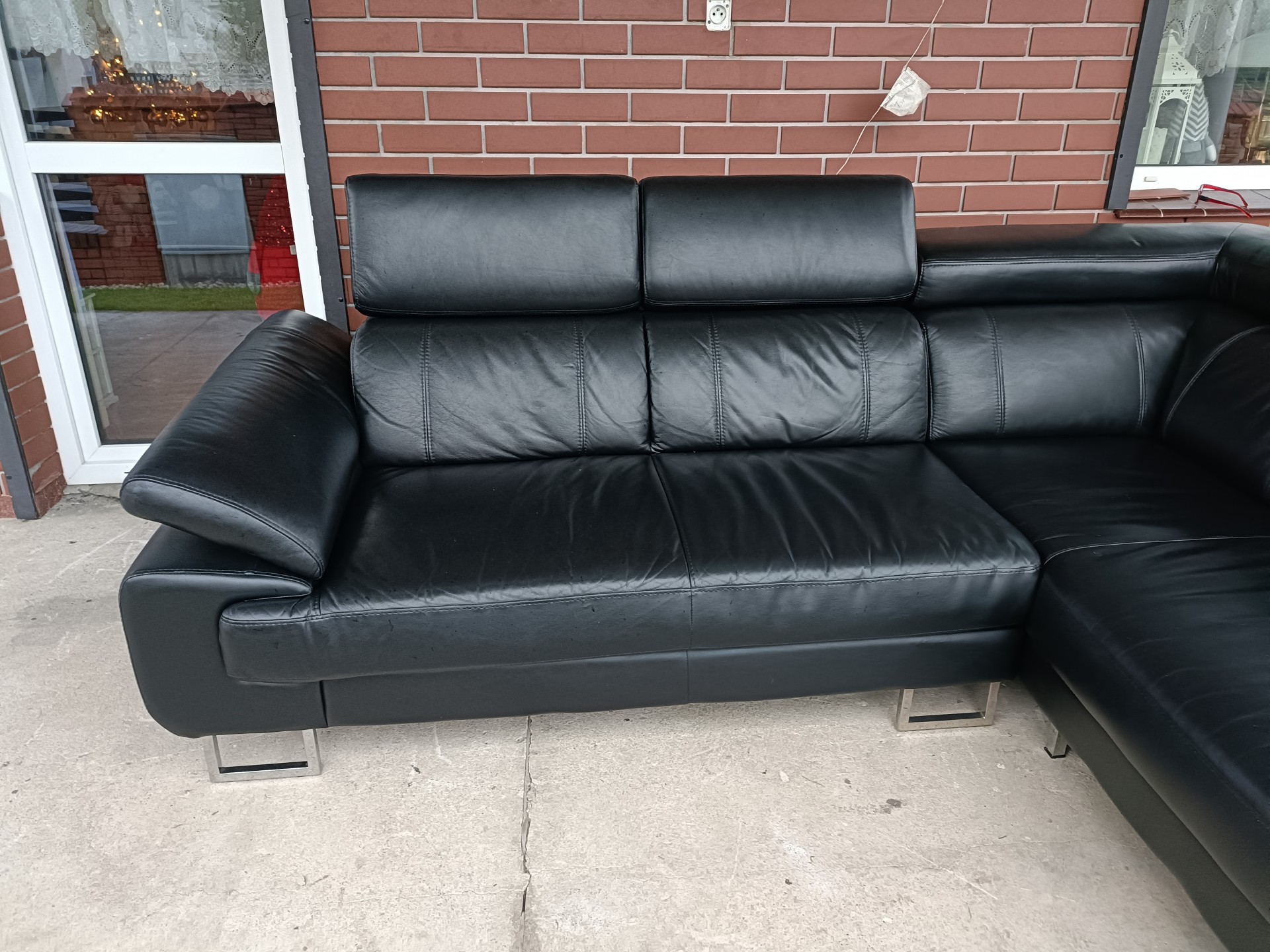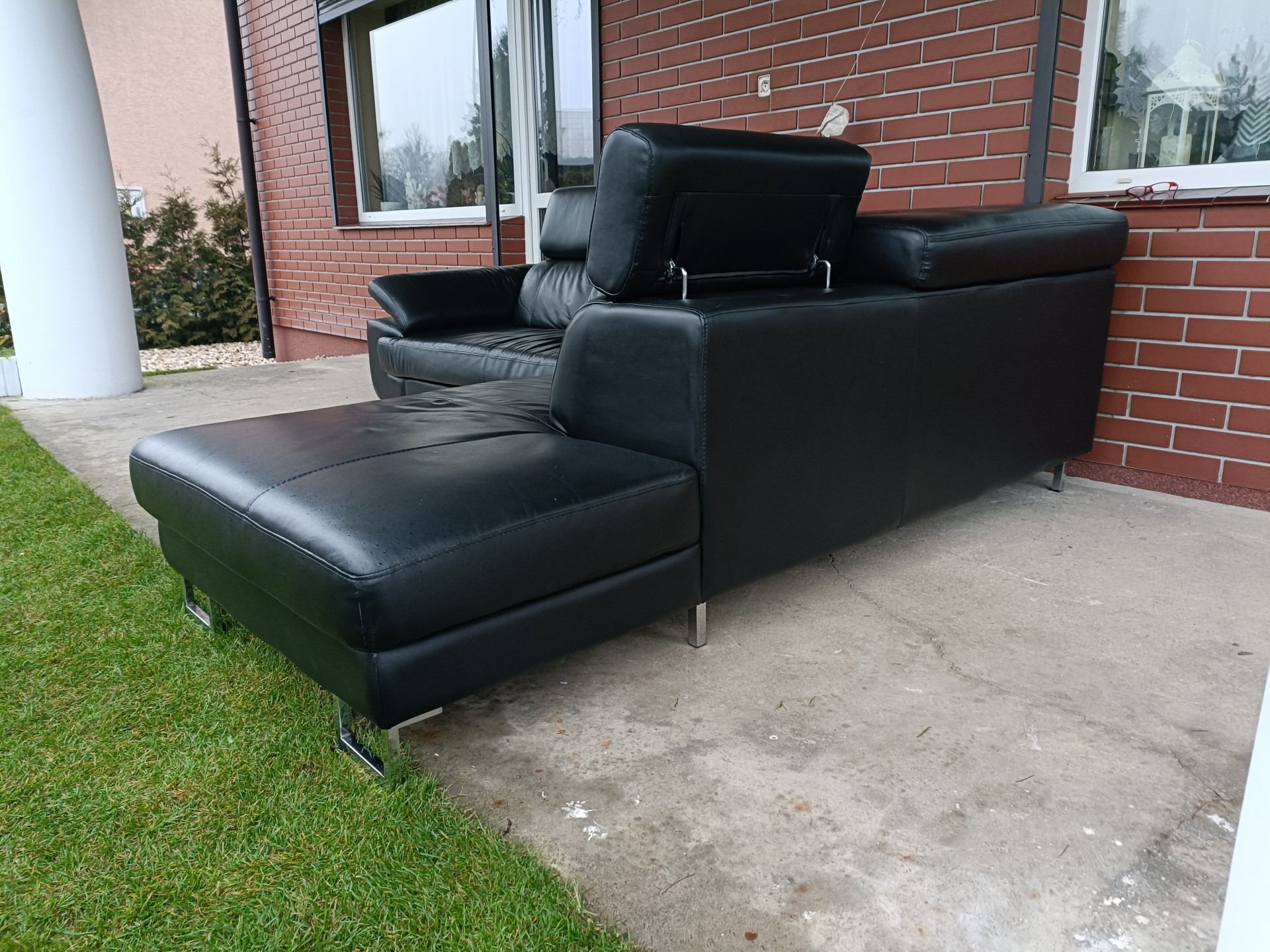 Sprzedam narożnik ze skóry kolor czarny wymiary 260 na 230 posiada regulowane zagłówki i regulowany podłokietnik nie posiada funkcji spania stan bdb