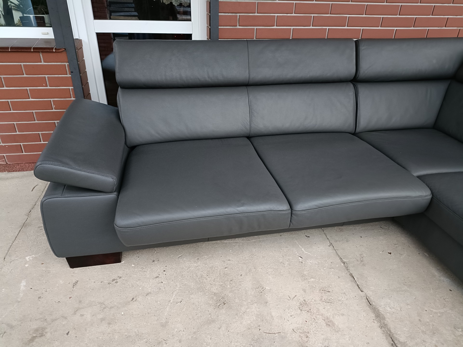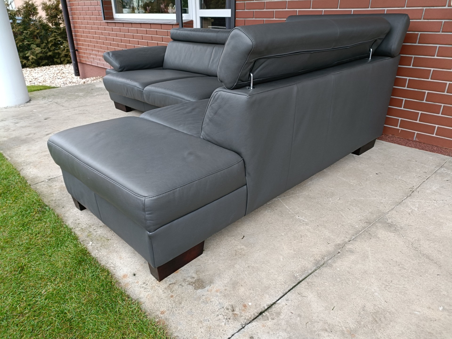 Sprzedam narożnik ze skóry kolor ciemny popiel wymiary 270 na 210 posiada regulowane wysuwane siedzisko umożliwiające spanie, regulowane zagłówki i regulowany podłokietnik stan bdb