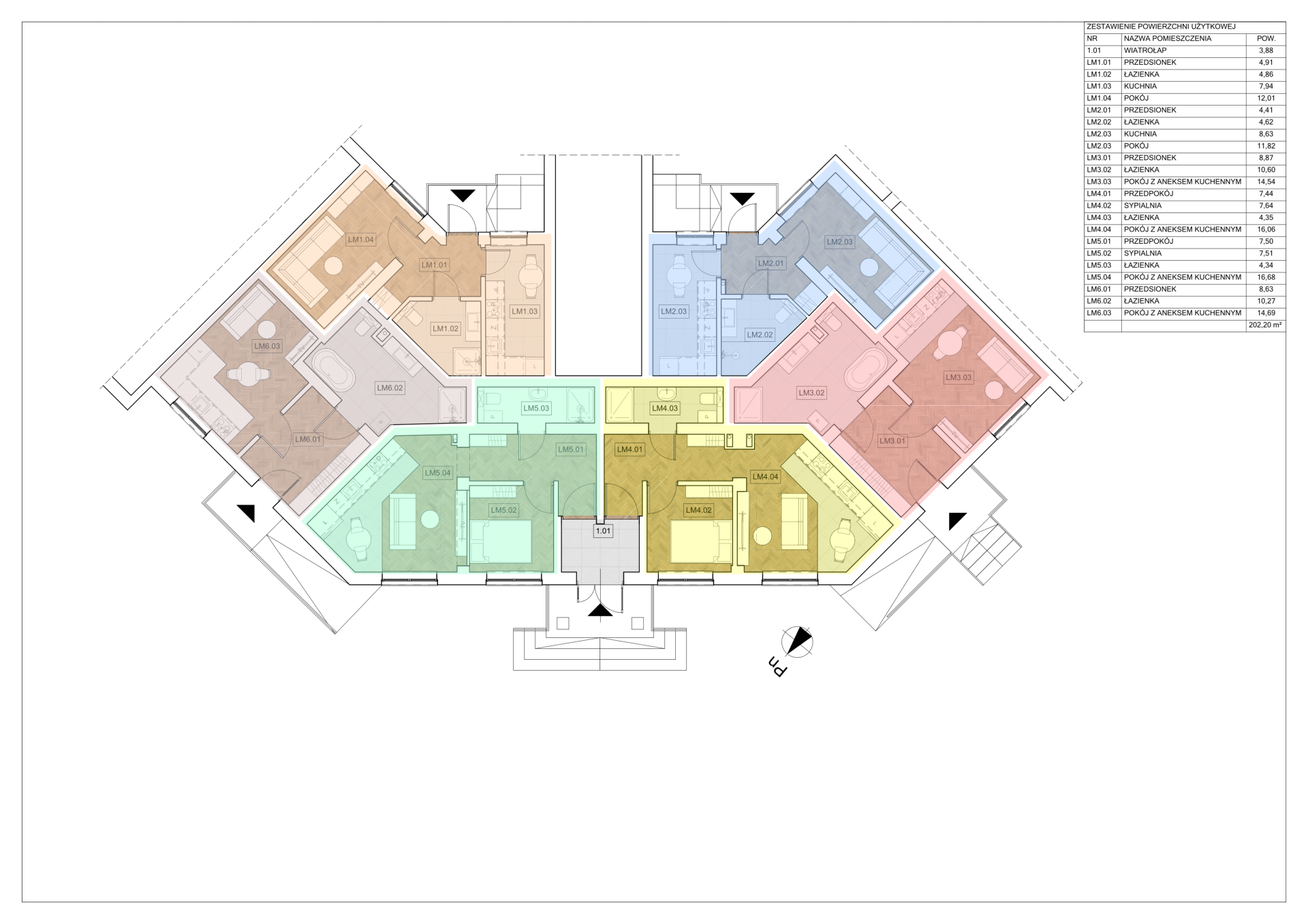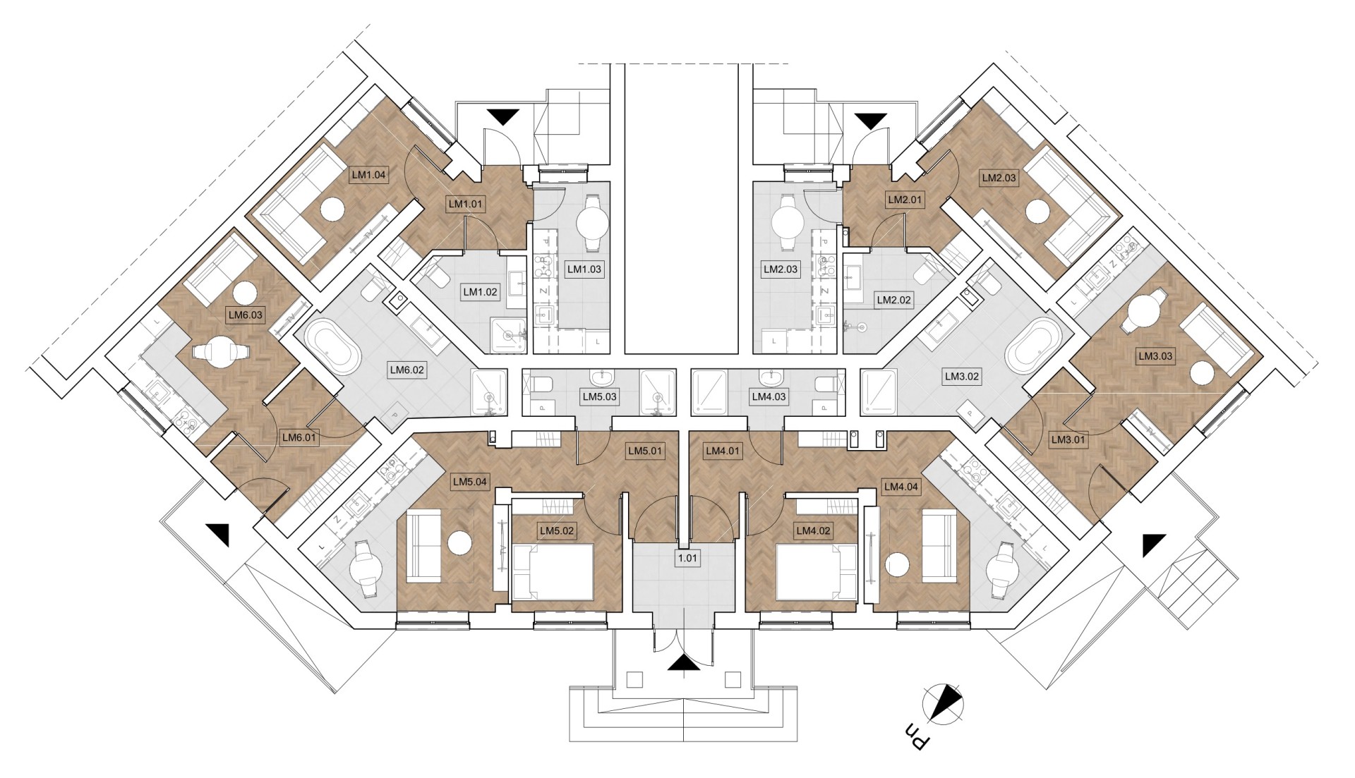 Istniejący projekt daje możliwość stworzenia portfela lokali maksymalizującego stopę zwrotu (ROI) oraz dywersyfikację najemców: 4 ustawne kawalerki oraz 2 komfortowe mieszkania dwupokojowe. Atutem nieruchomości jest aż pięć niezależnych wejść do budynku (od strony północnej, południowej i zachodniej), co zapewnia pełną autonomię. Dostęp do lokali odbywa się bezpośrednio z zewnątrz.