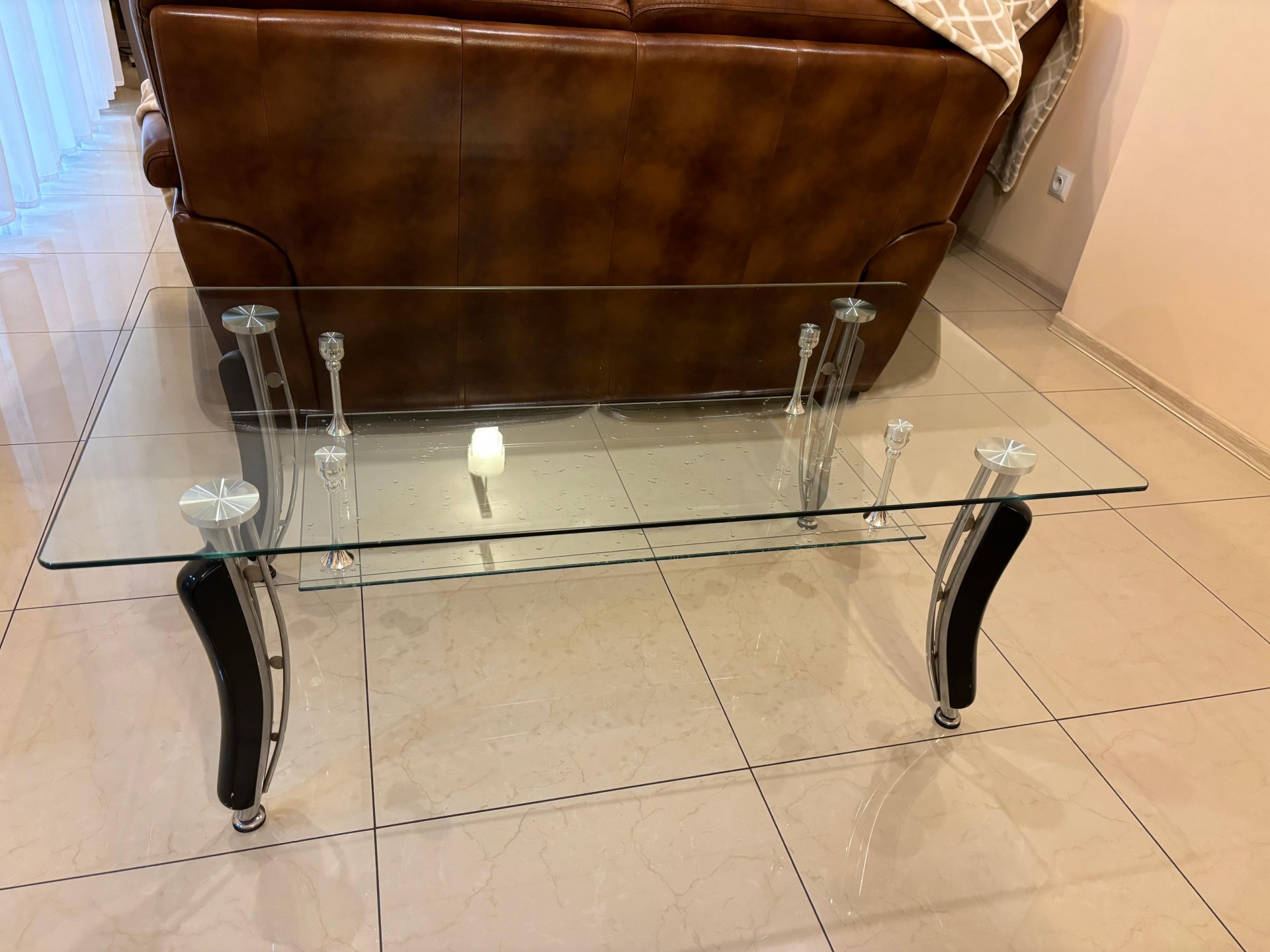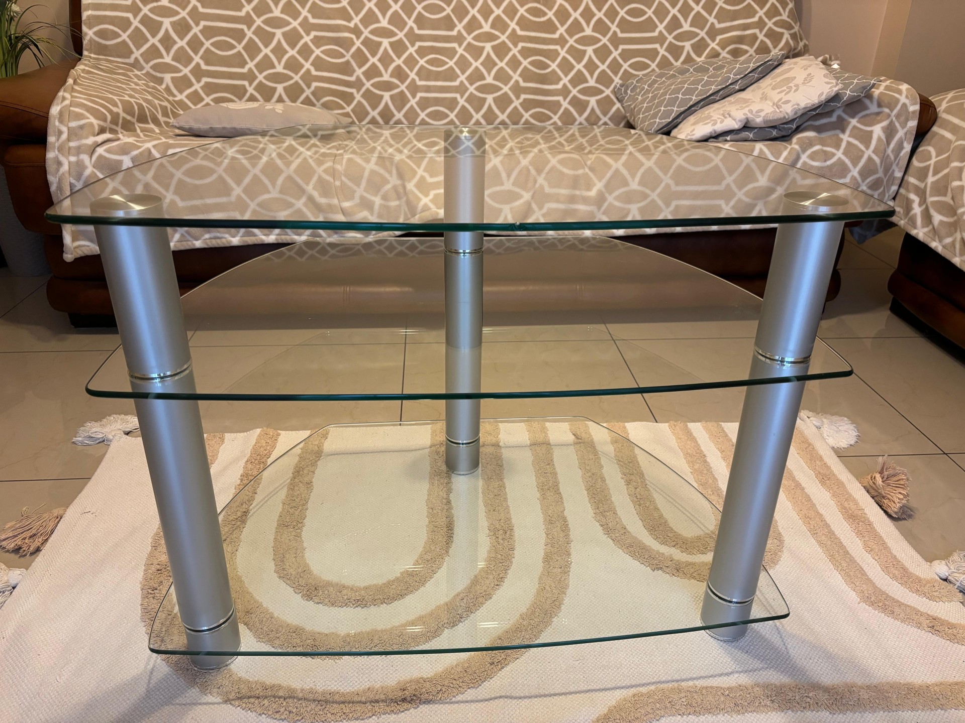 Sprzedam dwie ławy szklane i jeden stolik szklany pod telewizor w dobrym stanie cena to 50 złotych za sztukę.