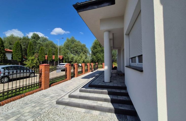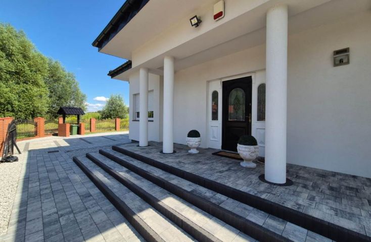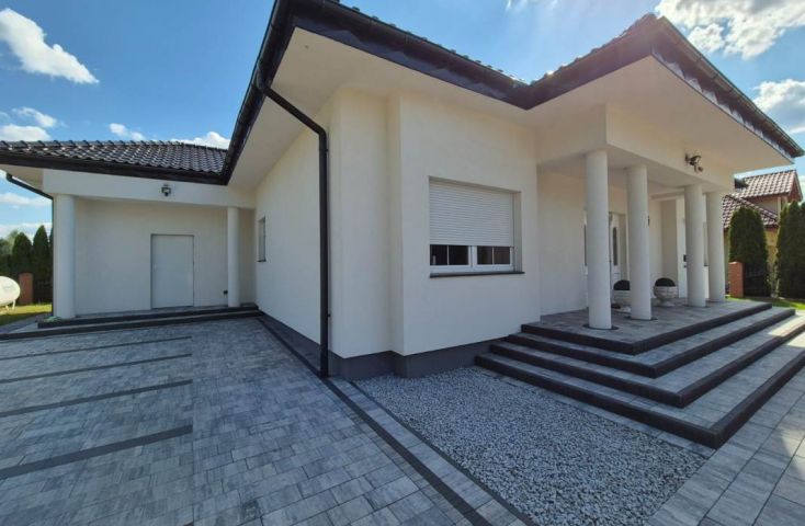 Zapraszam do zapoznania się z ofertą sprzedaży nieruchomości gruntowej zabudowanej, zlokalizowanej Koninie, na os. Pawłówek, przy ul. Francuskiej. Nieruchomość położona z dala od miejskiego zgiełku, w sąsiedztwie nowopowstałych budynków mieszkalnych oraz terenów niezabudowanych. Działka o powierzchni 668 m2, na której znajduje się nowoczesny, wolnostojący, parterowy budynek mieszkalny o powierzchni użytkowej ok. 160 m2. Dom wybudowany w 2014 roku w technologii tradycyjnej z cegły, ocieplony styropianem, otynkowany. Dach kopertowy, więźba dachowa drewniana, dach kryty dachówką ceramiczną, rynny i rury spustowe PCV. Stolarka okienna PCV w kolorze białym, we wszystkich oknach zamontowane rolety zewnętrzne manualne. Nieruchomość uzbrojona w: wodę z sieci, kanalizację, energię elektryczną, instalację alarmową oraz centralne ogrzewanie zasilane piecem na gaz ziemny (zbiornik na działce). Wnętrze domu stanowią następujące pomieszczenia: -duży, przestronny holl, -salon połączony wizualnie z otwartą kuchnią, z której prowadzą drzwi do dwóch kolejnych pomieszczeń gospodarczych m.in. spiżarki i pralni, -sypialnia z „prywatną” łazienką z wanną i prysznicem oraz garderobą, -drugiej łazienki z prysznicem oraz przejściem do pomieszczenia garderoby. Niniejszy dom charakteryzuje się emanującą elegancją. Zastosowano liczne elementy sztukaterii wewnętrznej głównie gzymsy przysufitowe łagodzące przejście ścian w płaszczyznę sufitu, rozety akcentujące miejsca podwieszenia lamp, szerokie listwy obramowujące drzwi czy idealnie wkomponowane listwy przypodłogowe. Ściany gipsowane, pomalowane w jednolitej barwie. Na podłogach wysokiej jakości deska drewniana. Biała stolarka drzwiowa, dekoracyjne tapety, piękna, klasyczna zabudowa meblowa kuchenna- to wszystko nadaje... więcej na www.invicus.pl, oferta nr 4397.