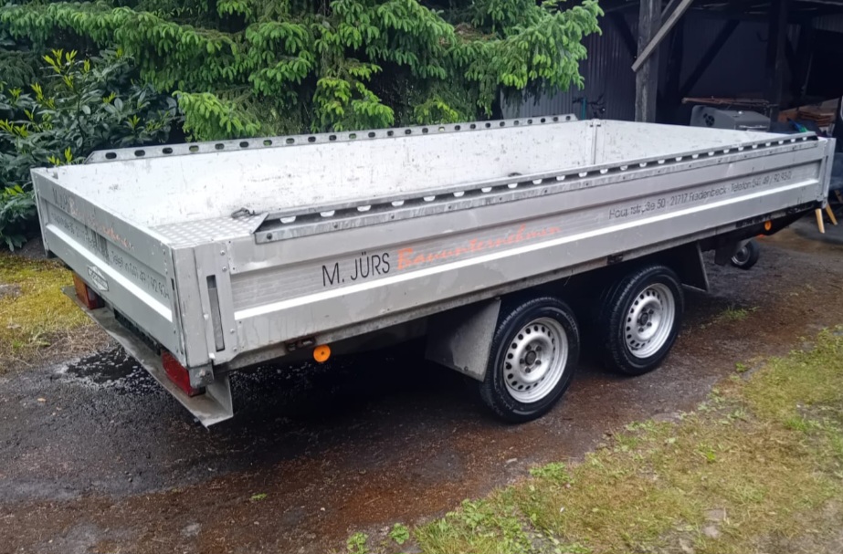 Przyczepa ciężarowa zarejestrowana firmy Boeckmann w bardzo dobrym stanie 2 osie. Długość z dyszlem 5300, szerokość 1865,wysokość 1120. Ciężar własny 560kg, ciężar całkowity 2000kg.