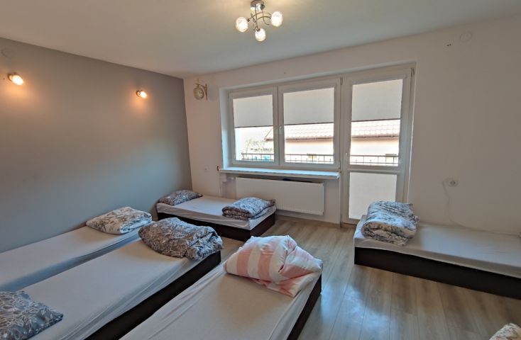 Zapraszam do zapoznania się z ofertą sprzedaży nieruchomości gruntowej zabudowanej dwoma budynkami mieszkalnymi po generalnym remoncie, zlokalizowanej w gminie Krzymów, w miejscowości Brzeźno przy ul. Leśnej.Nieruchomość położona „pod miastem”, w otoczeniu zabudowy mieszkaniowej jednorodzinnej, terenów zielonych oraz niezabudowanych.- Budynek mieszkalny „nr 1” (pierwsza linia zabudowy od ulicy) Dwukondygnacyjny budynek o powierzchni ok. 165m2 wybudowany w latach 80-tych metodą tradycyjną z cegły ocieplony 15 cm styropianem, otynkowany. Dach płaski typu stropodach, pokryty papą termozgrzewalną. Stolarka okienna PCV w kolorze białym. Stan techniczny budynku określony jako bardzo dobry, po całkowitym remoncie. Wyszczególnienie pomieszczeń:-parter: 3 pokoje, łazienka z prysznicem, oddzielne WC, przedpokój;-piętro: duży salon z kominkiem oraz z wyjściem na balkon, pokój (ok. 20m2) z wyjściem na balkon, przestronna kuchnia, łazienka z prysznicem i WC, klatka schodowa.Do budynku prowadzą 2 odrębne wejścia z zewnątrz-jedno na powierzchnię parteru, drugie na piętro. Wewnątrz budynku komunikacja pomiędzy poziomami odbywa się poprzez klatkę schodową.Wewnątrz budynku mieszkalnego ściany gipsowane i pomalowane, w łazience oraz w WC glazura. Podłogi wyłożone panelami oraz terakotą. Schody betonowe, pokryte terakotą. Drzwi wewnętrzne oraz zewnętrzne w bardzo dobrym stanie technicznym. Duży tradycyjny kominek w salonie otula swoim ciepłem w chłodne wieczory i dni.Budynek mieszkalny nr 2 (usytuowany w tylnej stronie działki)Budynek o powierzchni użytkowej ok. 150m2, murowany metodą tradycyjną w latach 90-tych, po generalnym remoncie 2 lata temu. Mury wykonane z cegły czerwonej i betonu komórkowego, ocieplone styropianem, otynkowane. Dach jednospadow... więcej na www.invicus.pl, oferta nr 4549.