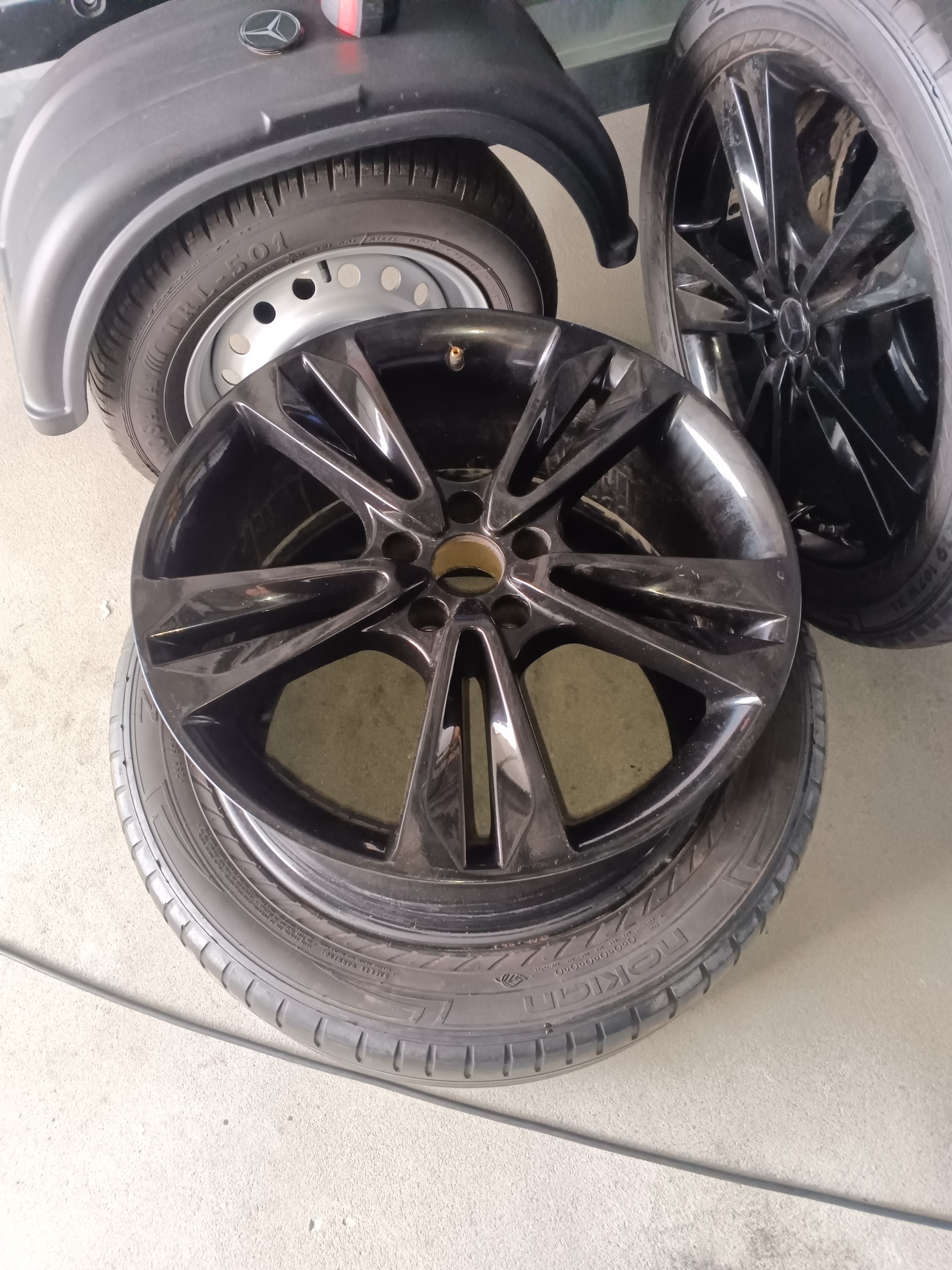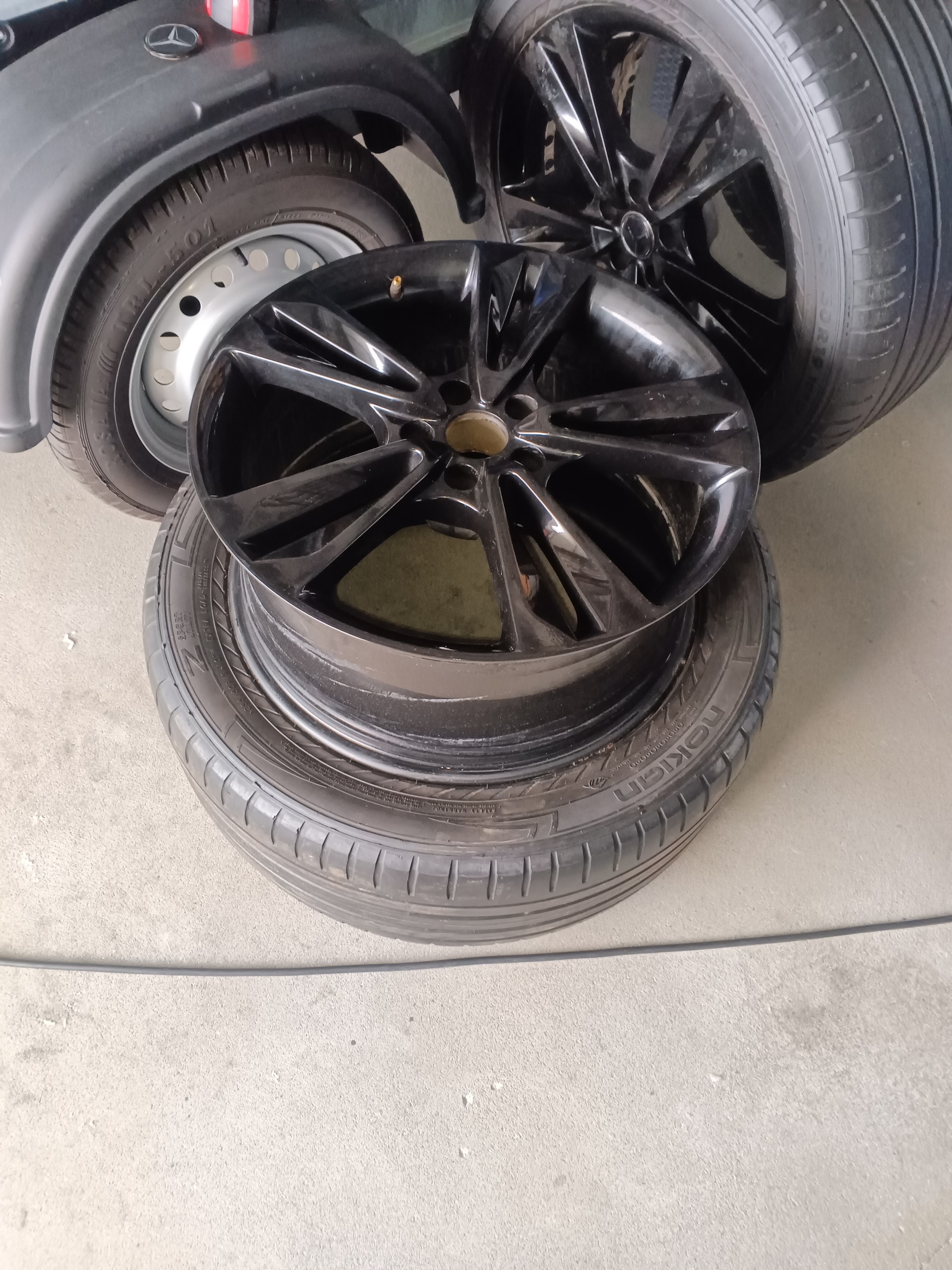 Alufelgi 5x112 r19 8,5J et40 otwór 66,6 dekielki w komplecie opony letnie 255/50 słabe.cena 1500 zł