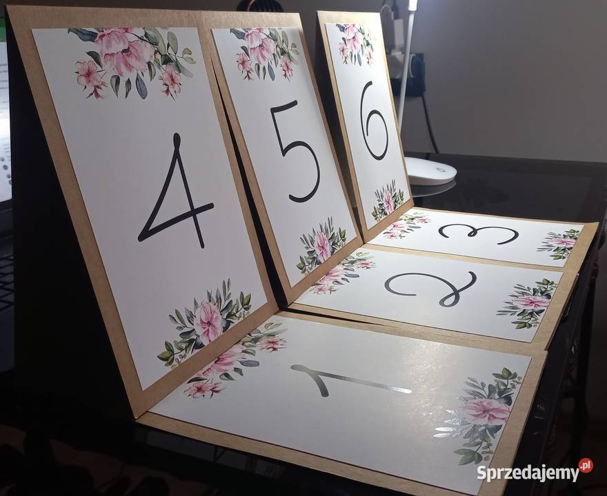 Białe numerki na stół weselny. Praktyczny i elegancki sposób oznaczenia miejsc gości na przyjęciu. Idealny dodatek do dekoracji weselnej.