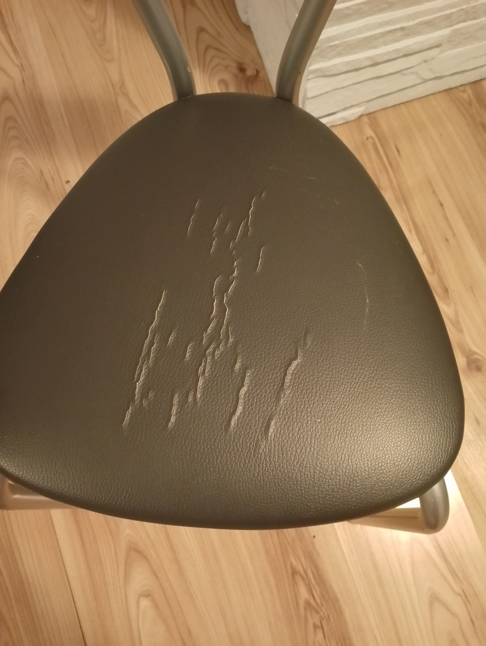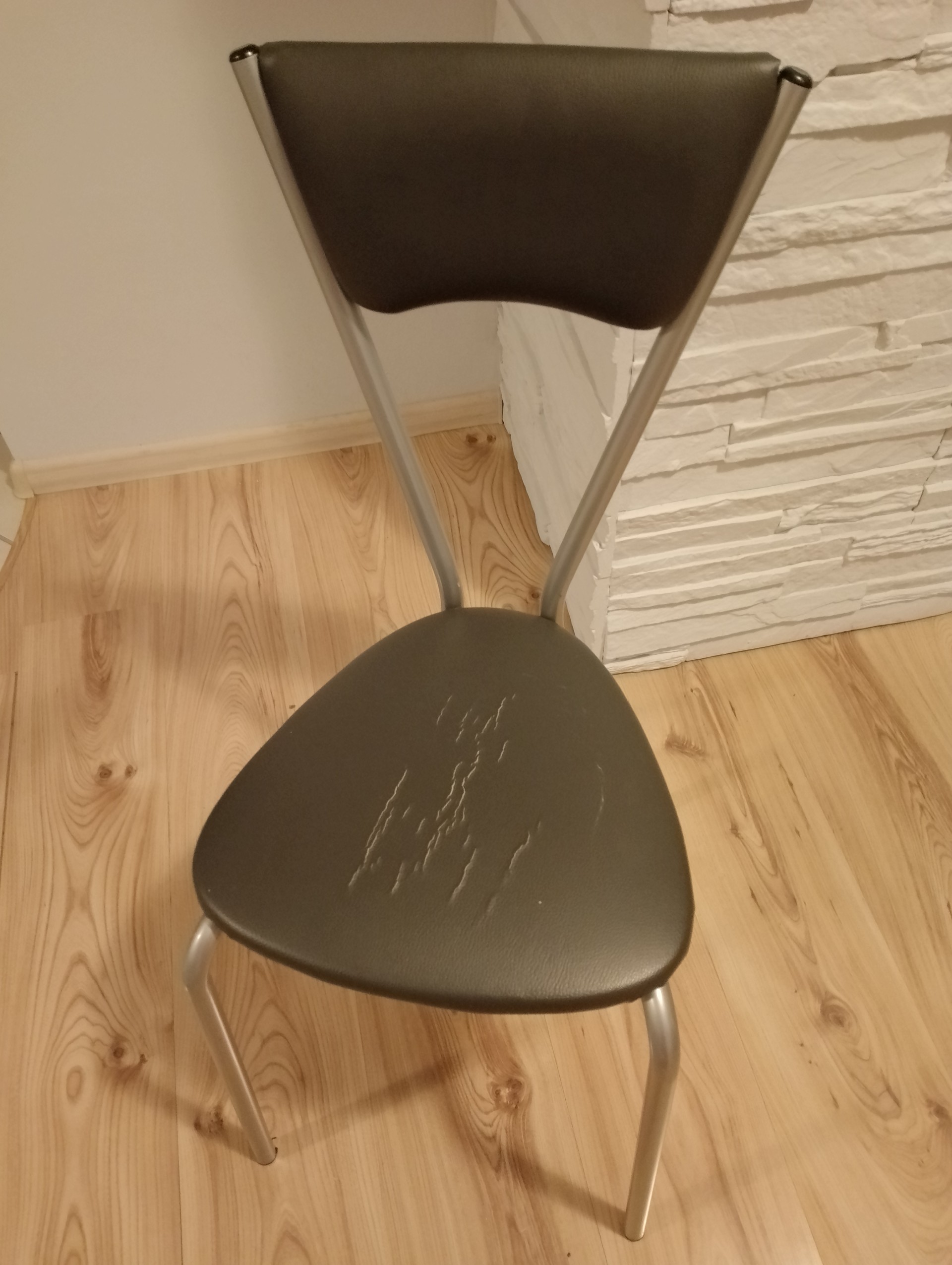 Sprzedam krzesła ( 4 szt. ), stan dobry, popękane obicie siedziska, nie przeszkadza w użytkowaniu, można samodzielnie wymienić, cena 25 zł/ szt.