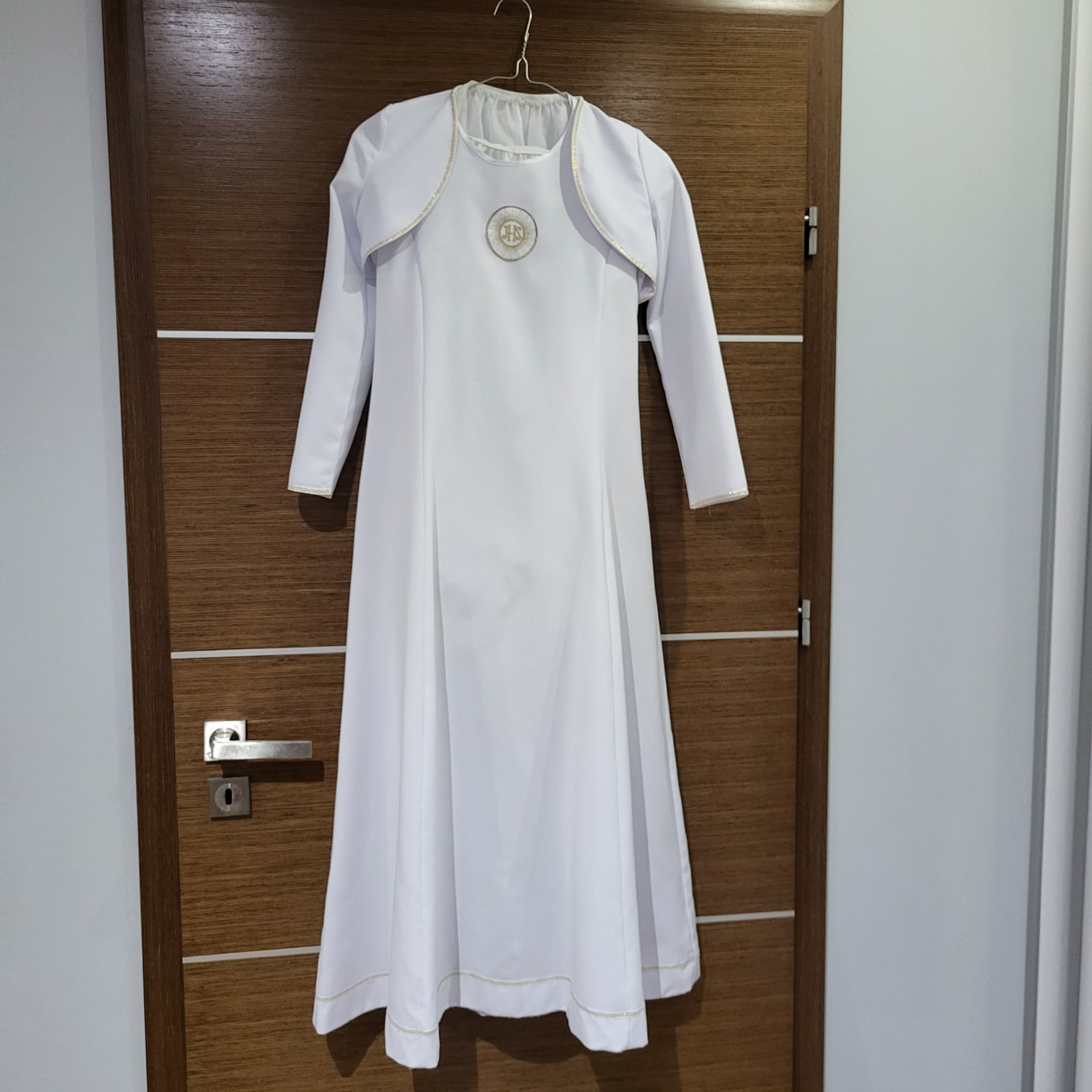 Mam do sprzedania albe na krótki rękaw + bolerko ( narzutka) na długi rękaw z torebką + halka rozszerzana pod albę. Cena 100zł .Długość 115cm a szerokosc w klatce piersiowej pod pachami 37 cm