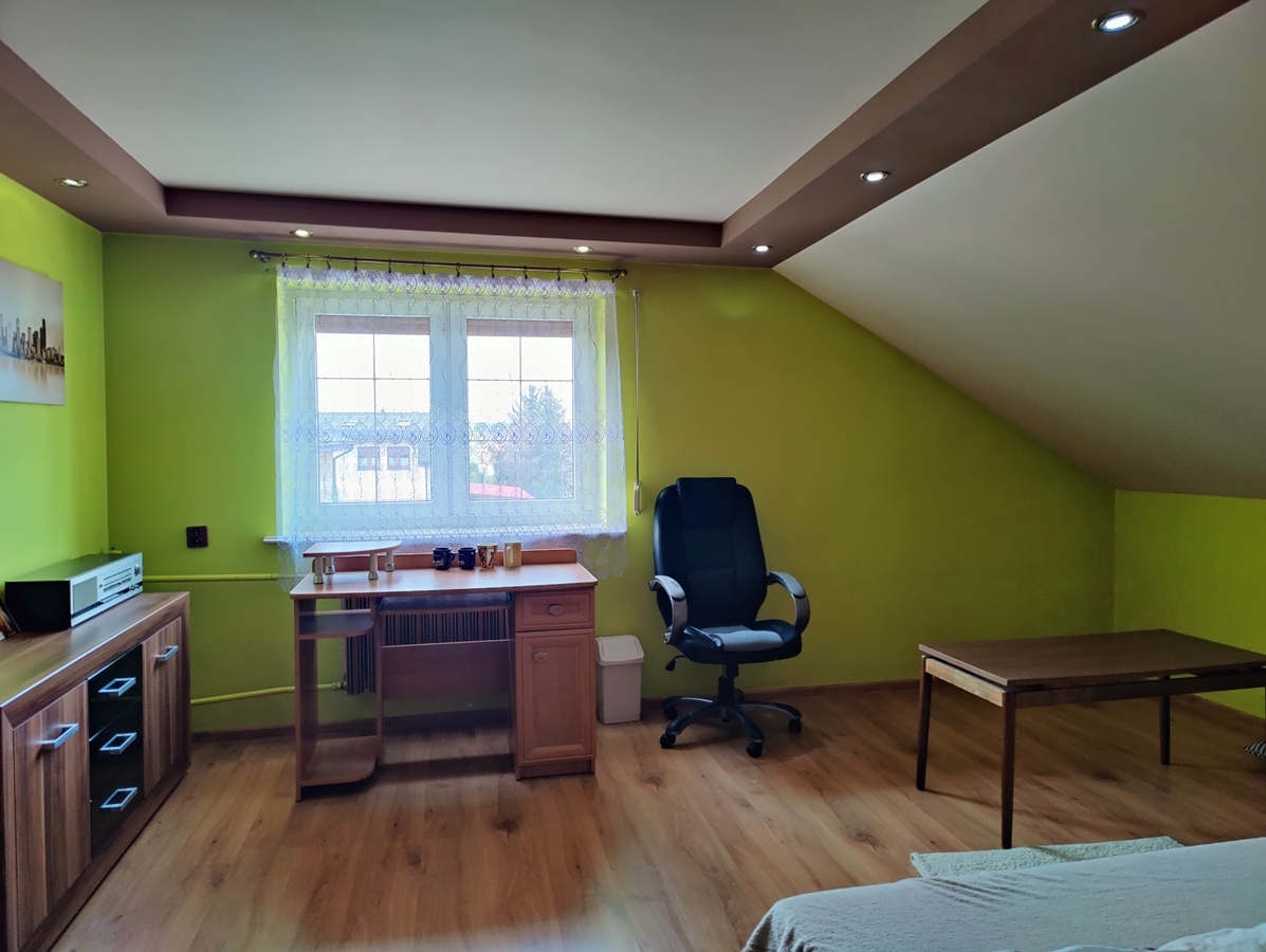 Poddasze po remoncie kilka lat temu polegającym na wymianie stolarki drzwiowej, położeniu paneli podłogowych oraz urządzeniu nowej łazienki.