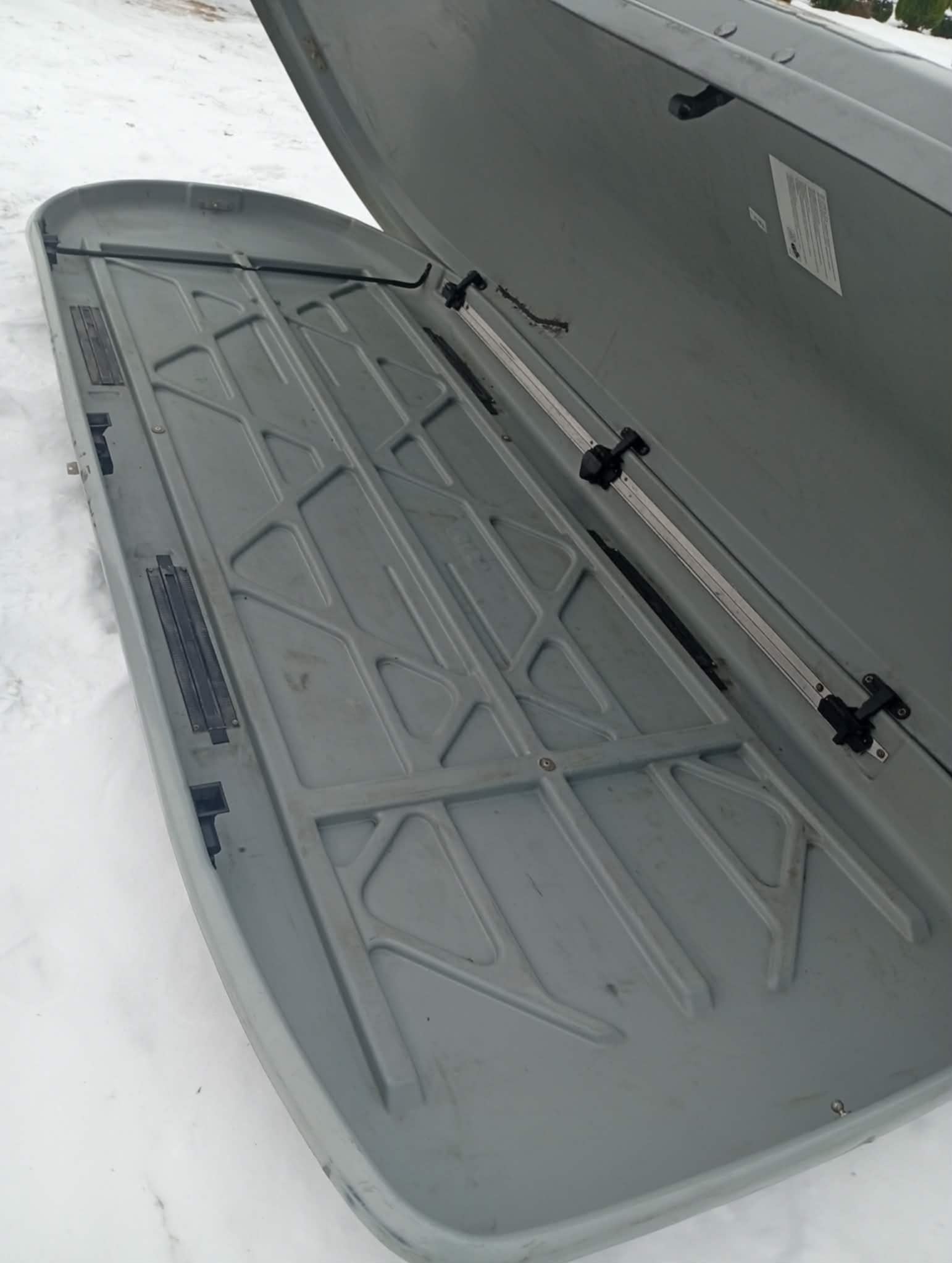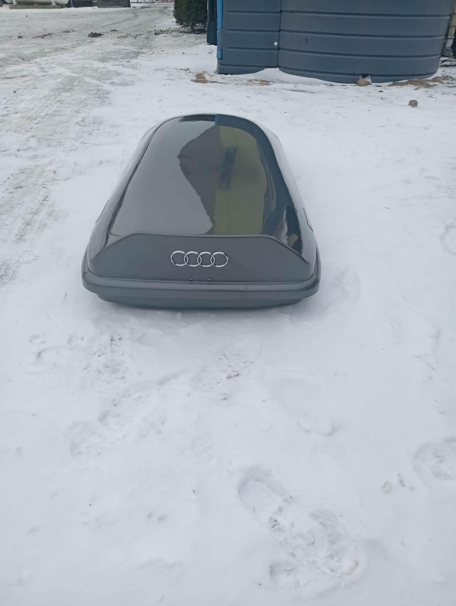Witam sprzedam box plus bagażnik dachowy cały gotowy do montażu, box został przytarty od góry co skutkowało pęknięciem po bokach (tych dwóch miejscach na zdjęciach) zostało to naprawione od wewnątrz lecz z zewnątrz zostały ślady pęknięć bagażnik dachowy oryginalny do Audi Q7 4L