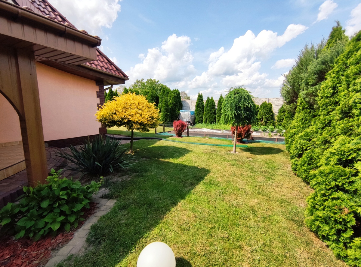 Zapraszam do zapoznania się z ofertą sprzedaży nieruchomości gruntowej zabudowanej, zlokalizowanej w miejscowości Główiew przy ul. Kaliskiej w gminie Stare Miasto w odległości około 14 km (15 minut samochodem) od centrum Konina. Nieruchomość położona z dala od miejskiego zgiełku, w spokojnej miejscowości w sąsiedztwie nowo powstałych i istniejących budynków mieszkalnych, terenów niezabudowanych, łąk i pól uprawnych. Działka o powierzchni 2050 m2, na której posadowiony jest nowoczesny, wolnostojący, parterowy z poddaszem użytkowym budynek mieszkalny o powierzchni użytkowej 135.82 m2, drugi wolnostojący budynek, który wcześniej pełni rolę mieszkalnego, obecnie użytkowany na cele gospodarcze oraz dwa budynki garażowe. Budynek mieszkalny oddany do użytku w 2008 roku, budowany w technologii tradycyjnej, mury wykonane z pustaka ceramicznego, na zewnątrz ocieplone styropianem, otynkowane, fundament obłożony płytką klinkierową. Dach wielospadowy o nieregularnych kształtach, konstrukcji drewnianej, ocieplony wełną mineralną, kryty dachówką ceramiczną, rynny i rury spustowe z blachy tytan-cynk, obróbki blacharskie z blachy tytan. Stolarka okienna PCV, od zewnątrz w kolorze złoty dąb, od środka biała, dodatkowo zamontowane rolety zewnętrzne. Stan techniczny budynku został określony jako bardzo dobry. Budynek wyposażony w następujące instalacje: elektryczną, wodociągową- z sieci oraz własna studnia głębinowa, kanalizacyjną-przydomowa oczyszczalnia ścieków, centralnego ogrzewania (piec na ekogroszek), grzejniki, system wentylacji grawitacyjnej, grzejniki ścienne typu drabinka w łazienkach, panele fotowoltaiczne o mocy około 10 kw, stacja uzdatniania wody oraz kominek.