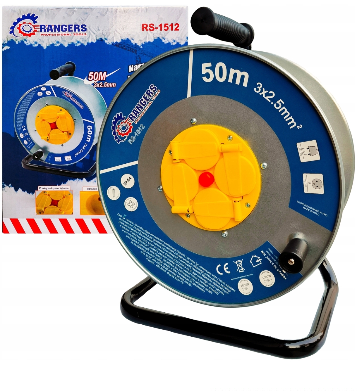 Metalowy bęben i stelaż z rączką - nasz przedłużacz posiada metalowy stelaż i bęben, dzięki czemu jest znacznie mocniejszy i nie straszne są mu zadania specjalne