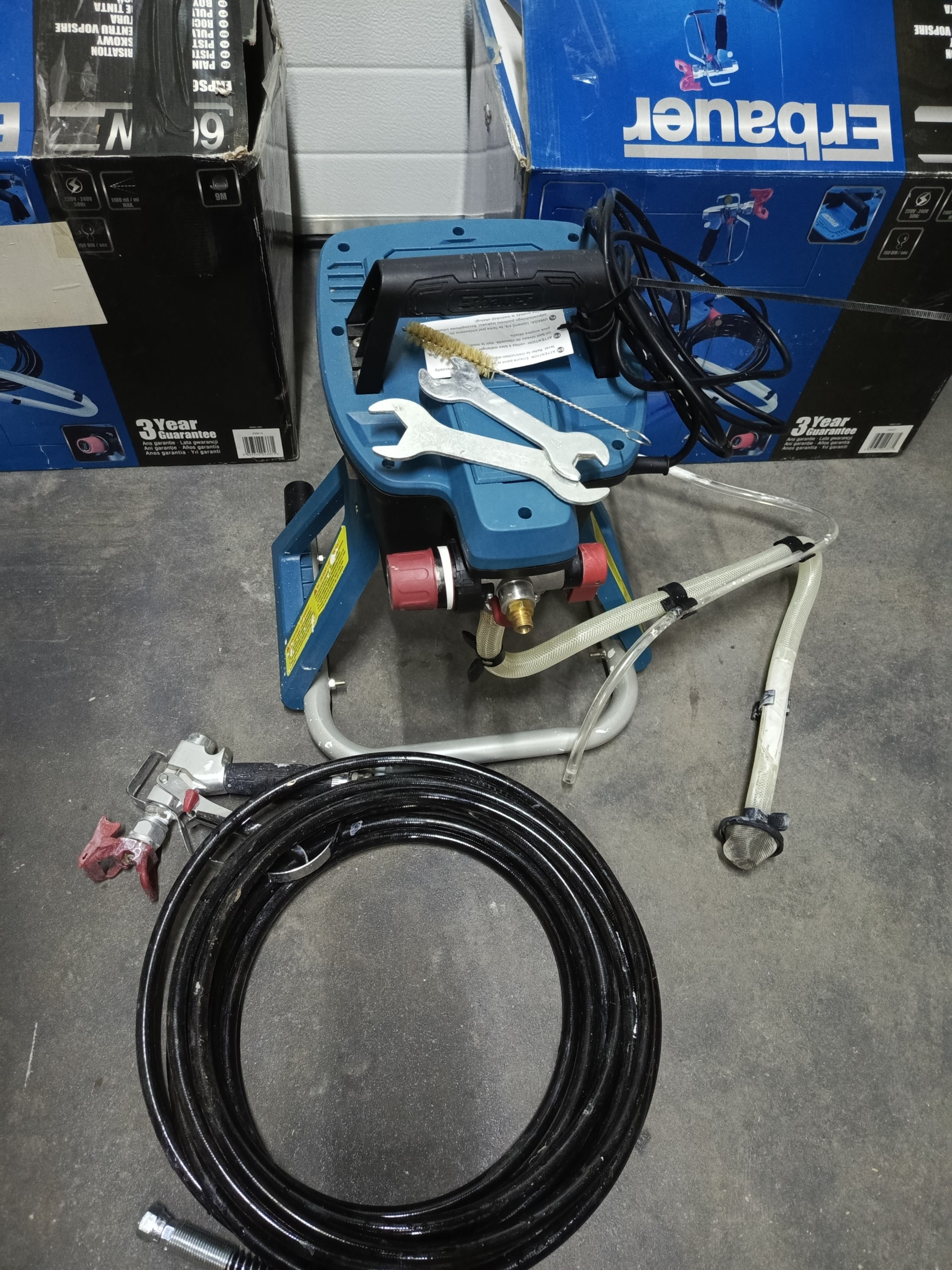 Przedmiotem sprzedaży jest agregat malarski erbauer, urządzenie używane, w pełni sprawne. Agregat zaciąga farbne prosto z wiadra. Dysze, wąż i pistolet na standardowyn wymiar, pasują od większości dostępych na rynku .