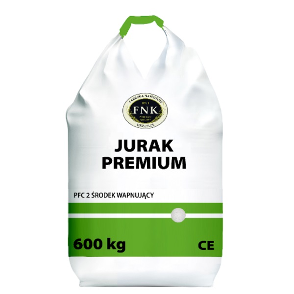 Wapno granulowane bez magnezu Jurak Premium to bezpieczny nawóz wapniowy o wysokiej zawartości CaCO3 - 90% (CaO 50%). Jest on polecany na glebach szczególnie kwaśnych i ubogich w wapń. Dawkowanie powinno być dobierane indywidualnie w zależności od odczynu i składu chemicznego gleby. Granulowana forma nawozu pozwala na bardzo precyzyjny wysiew zaplanowanej dawki, a tym samym prawidłowy rozkład czynnika odkwaszającego. Po zastosowaniu wapna granulowanego Jurak, rozwój roślin przebiega bez zakłóceń, budując wysoki plon. Wapno granulowane Jurak jest wapniowym nawozem węglanowym, wytwarzanym w procesie granulacji uprzednio silnie rozdrobnionej, miękkiej skały wapiennej. Cenną cechą tego nawozu jest możliwość stosowania go wyjątkowo bezpiecznie i czysto – bezpyłowo, co eliminuje częste konflikty występujące przy rozsiewie wapniowych nawozów pylistych. Nawóz ten jest bardzo wygodny nie tylko do zwyczajowego stosowania przedsiewnego, ale także do zastosowania pogłównie, bezpośrednio na powierzchnię pola, bez konieczności mieszania z glebą, np. w uprawach sadowniczych, na użytkach zielonych i polach zbóż ozimych.