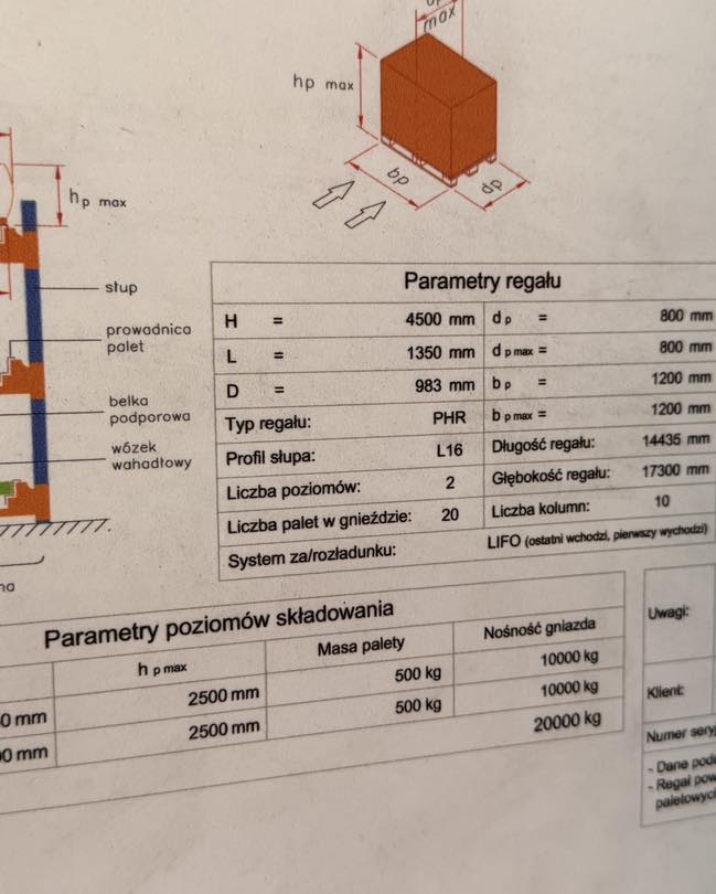 • system składowania LIFO (ostatnia paleta wchodzi – pierwsza wychodzi)