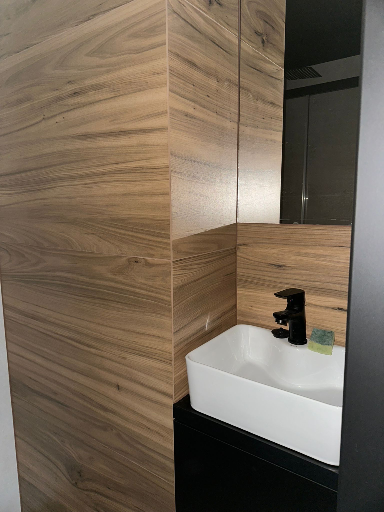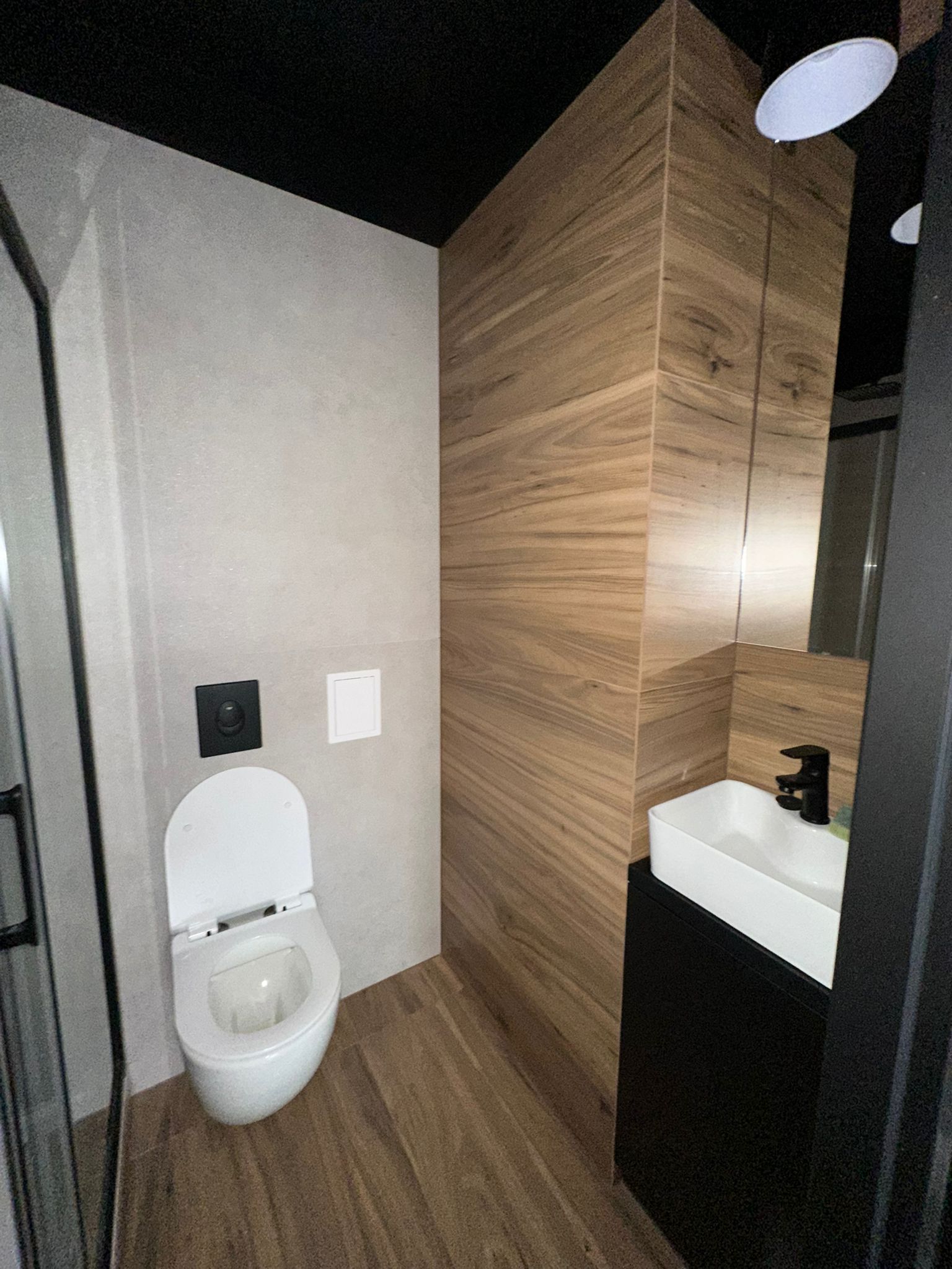 -wygipsowanio i pomalowano ściany, położono beton architektoniczny oraz glazurę;