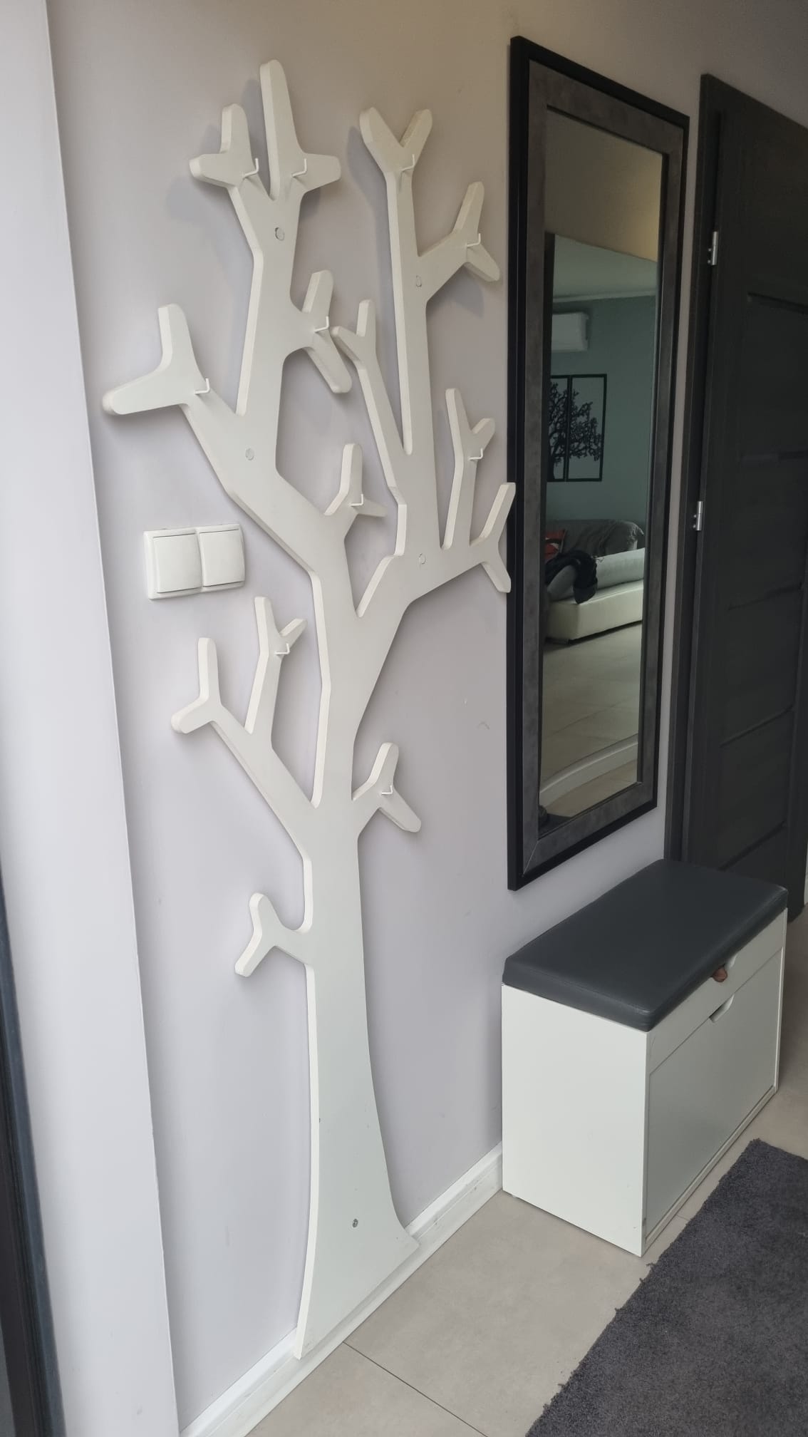 Mam do sprzedania 3 elementowy zestaw do przedpokoju / szafka na buty lustro i wieszak -drzewko/.Cena za zestaw 200zl.Mozliwosc kupna osobno /szafka 60zl lustro 60zl wieszak-drzewko 120zl/. Szafka na buty wys.49cm gleb. 30 cm dl. 65 cm. Siedzisko szare podnoszone /schowek np. na torby paste do butow itp./ 2 szuflady uchylne.Lustro w ramie szaro-czarnej. Szer. z rama 59cm b/ramy43cm. Wysokosc z rama 140cm b/ramy 124cm. Drzewko- wieszak biale drewniane wysokosc 180cm szer. 80cm. Odbior osobisty. Odpowiem na sms.