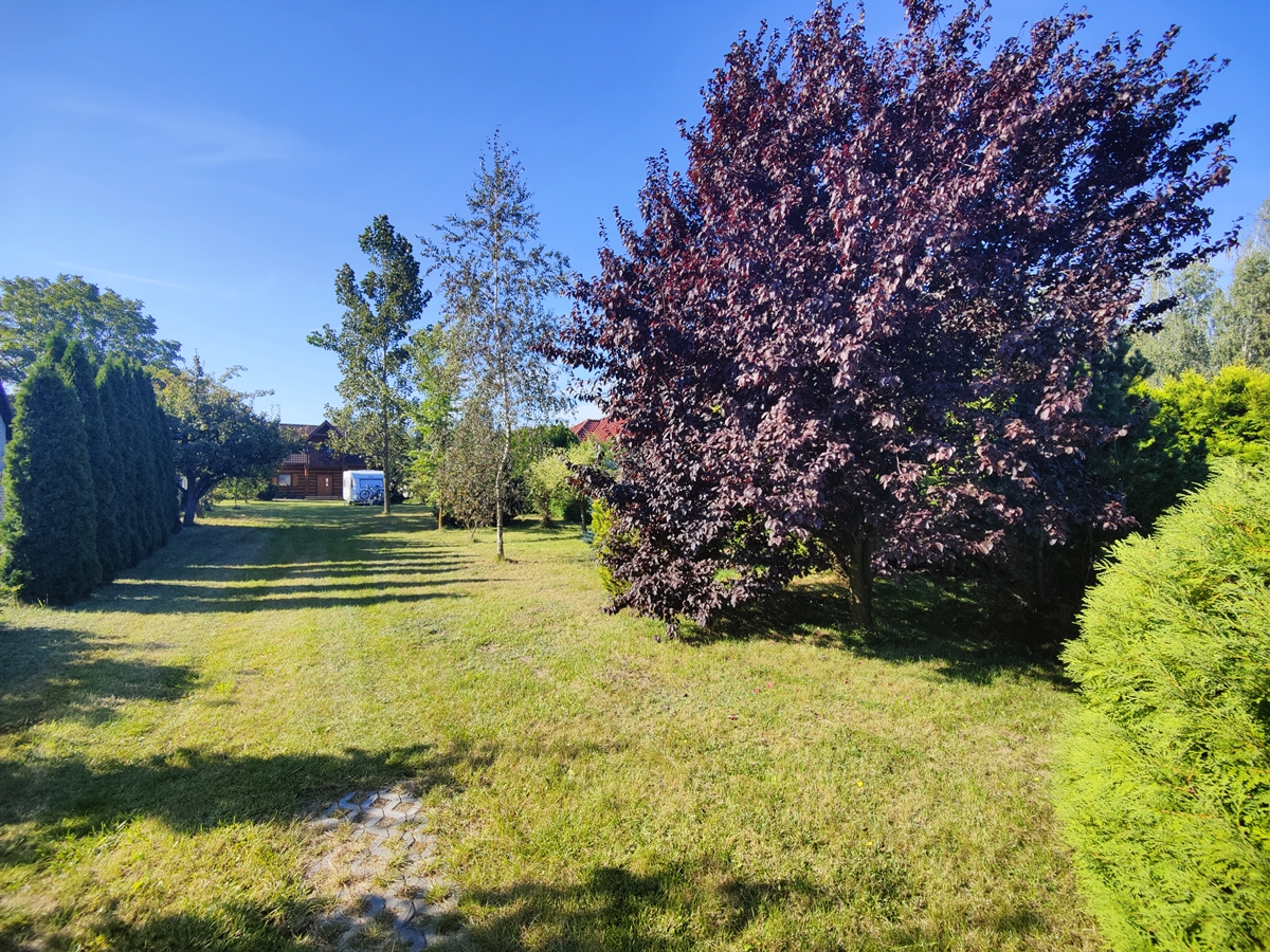 Działka o pow. 3100 m2 zagospodarowana zielenią, trawnikiem i licznymi drzewami ozdobnymi. Działka ogrodzona siatką, płotem betonowym oraz płotem drewnianym od frontu.
