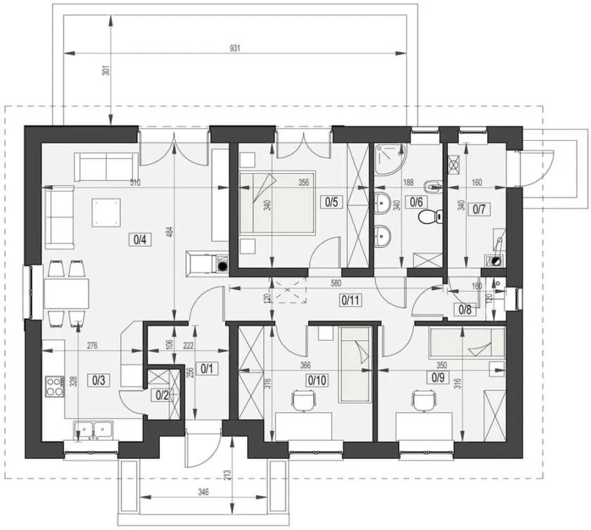✔ okna trzyszybowe, rozprowadzone instalacje