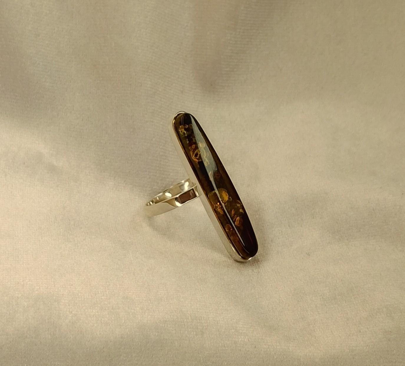 Srebrne pierścionki z bursztynem
