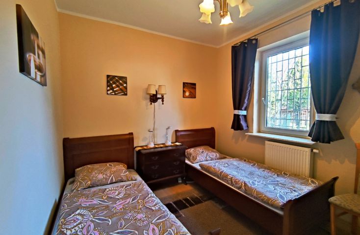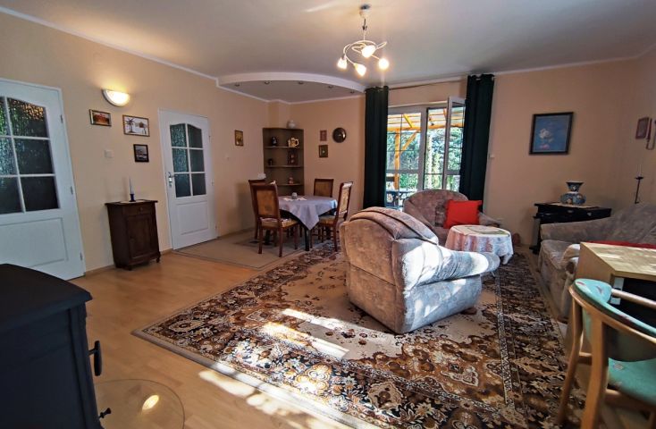 Zapraszam do zapoznania się z ofertą wynajmu domu, zlokalizowanego w miejscowości Żółwieniec, gm. Ślesin. Nieruchomość położona w malowniczym otoczeniu, w sąsiedztwie budynków mieszkalnych jednorodzinnych całorocznych, budynków rekreacyjnych, jeziora Ślesińskiego oraz lasów. Budynek mieszkalny parterowy o powierzchni parteru 70 m2 plus piwnica, łącznie 120 m2 na której wydzielone zostały następujące pomieszczenia:- parter: salon połączony z kuchnią oraz wyjściem na taras, 2 sypialnie, łazienka, korytarz , klatka schodowa; - piwnica: korytarz, kotłownia, 2 pokoje, pomieszczenie gospodarcze.Wnętrze domu charakteryzuje się dobrym standardem umeblowania, wyposażenia i wykończenia. Ściany pomalowane, z elementami glazury (w kuchni i łazience). Na podłogach terakota. W salonie tradycyjny kominek typu "koza". Schody wewnętrzne oraz zewnętrzne betonowe, wyłożone terakotą. Balustrady wykonane z drewna. Stolarka okienna PCV w kolorze białym, zamontowane kraty antywłamaniowe stalowe.Nieruchomość uzbrojona w: wodę z sieci, kanalizację gminną, energię elektryczną oraz centralne ogrzewanie z własnej kotłowni znajdującej się w pomieszczeniu piwnicy (piec olejowy). Na działce oprócz budynku mieszkalnego znajduje się również wiata garażowa do dyspozycji najemcy, z opcją parkowania jednego samochodu.Teren wokół domu, w tym chodnik, miejsce parkingowe, podjazd do wiaty wyłożony kostką brukową. Przydomowy ogród charakteryzuje się dużym drzewostanem, różnorodną roślinnością zarówno iglastą (w tym świerki, sosny, tuje) oraz liściastą z przewagą krzewów ozdobnych. Działka w całości ogrodzona-ogrodzenie mieszane, od strony frontowej słupki murowane, wyłożone ozdobną cegłą, przęsła oraz brama wjazdowa metalowe; z pozostałych stron ogrodzenie betonowe,... więcej na www.invicus.pl, oferta nr 4554.