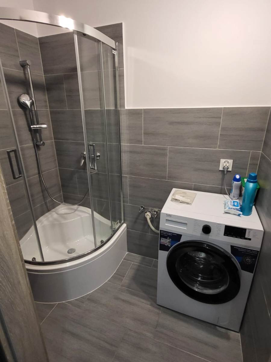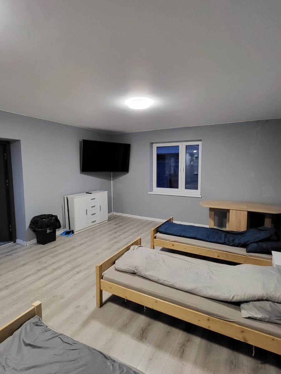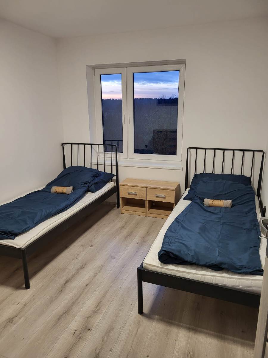 -parter: duży pokój dzienny, 2 mniejsze pokoje, kuchnia, łazienka z prysznicem, odrębne WC, przedpokój: