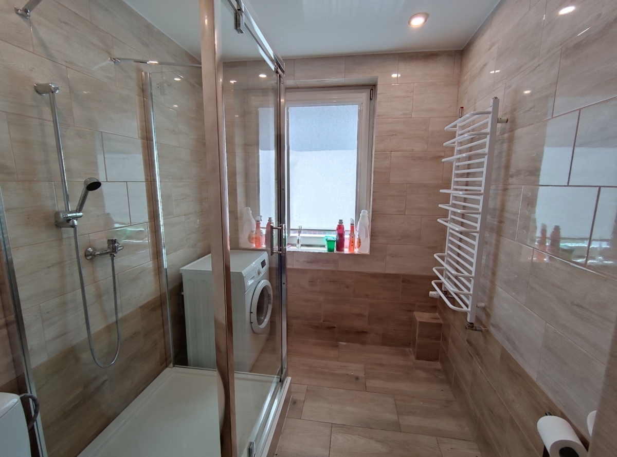 -parter: 3 pokoje, łazienka z prysznicem, oddzielne WC, przedpokój;