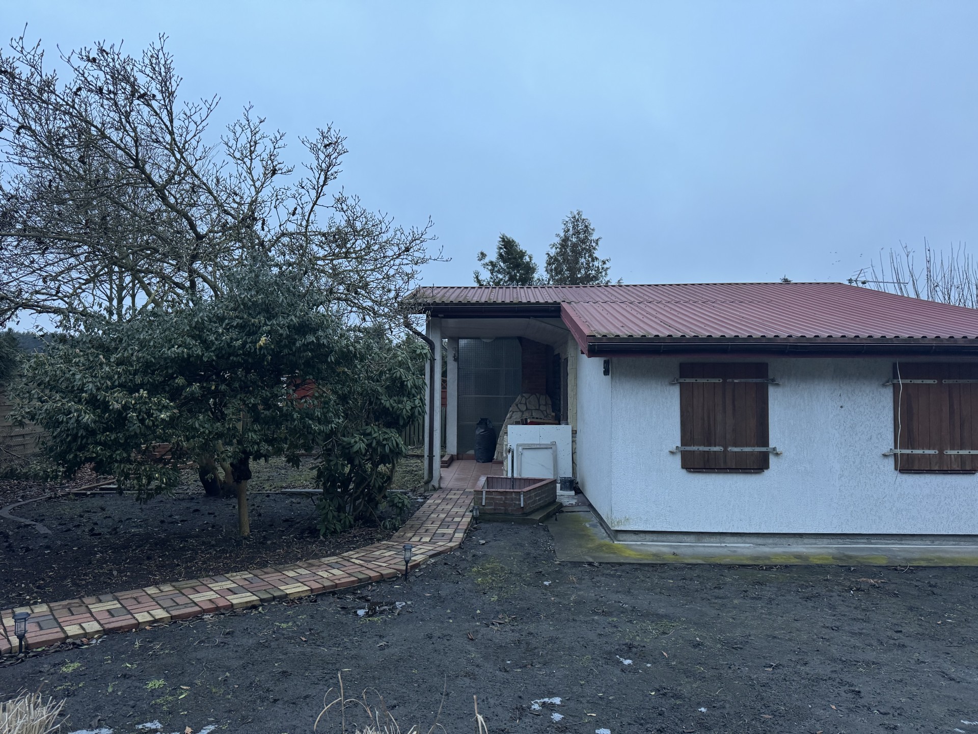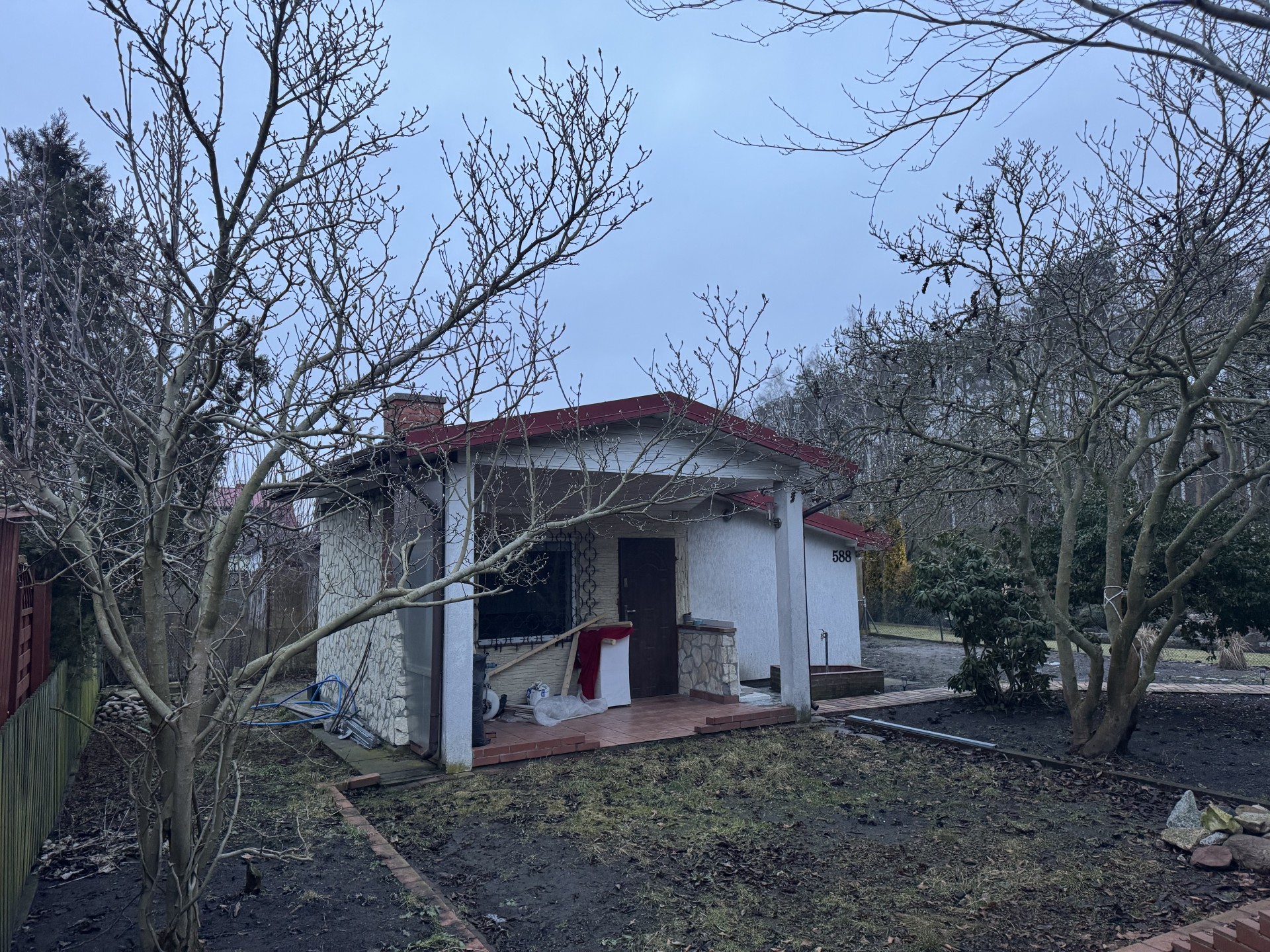 Działka zabudowana domkiem, który jest po odświeżeniu/remoncie. Domek ocieplony zewnątrz styropianem, na dachu blacha, dodatkowo sufity w pomieszczeniach podwieszane również z dodatkowym ociepleniem wełną 10/15cm. Domek posiada nieużytkowy niski strych, mogący służyć jako dodatkowy schowek.