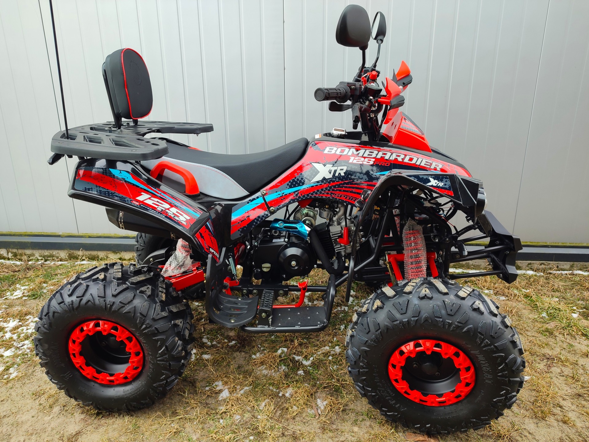 Quad XTR 008 Varia PRO posiada bogatsze wyposażenie. Pojazd odpalany z rozrusznika elektrycznego, z silnikiem czterosuwowym o pojemności 125cm3 dla dzieci od 7 lat. Sportowy quad z biegiem wstecznym, zrywką oraz regulacją prędkości na dużych kołach 8"