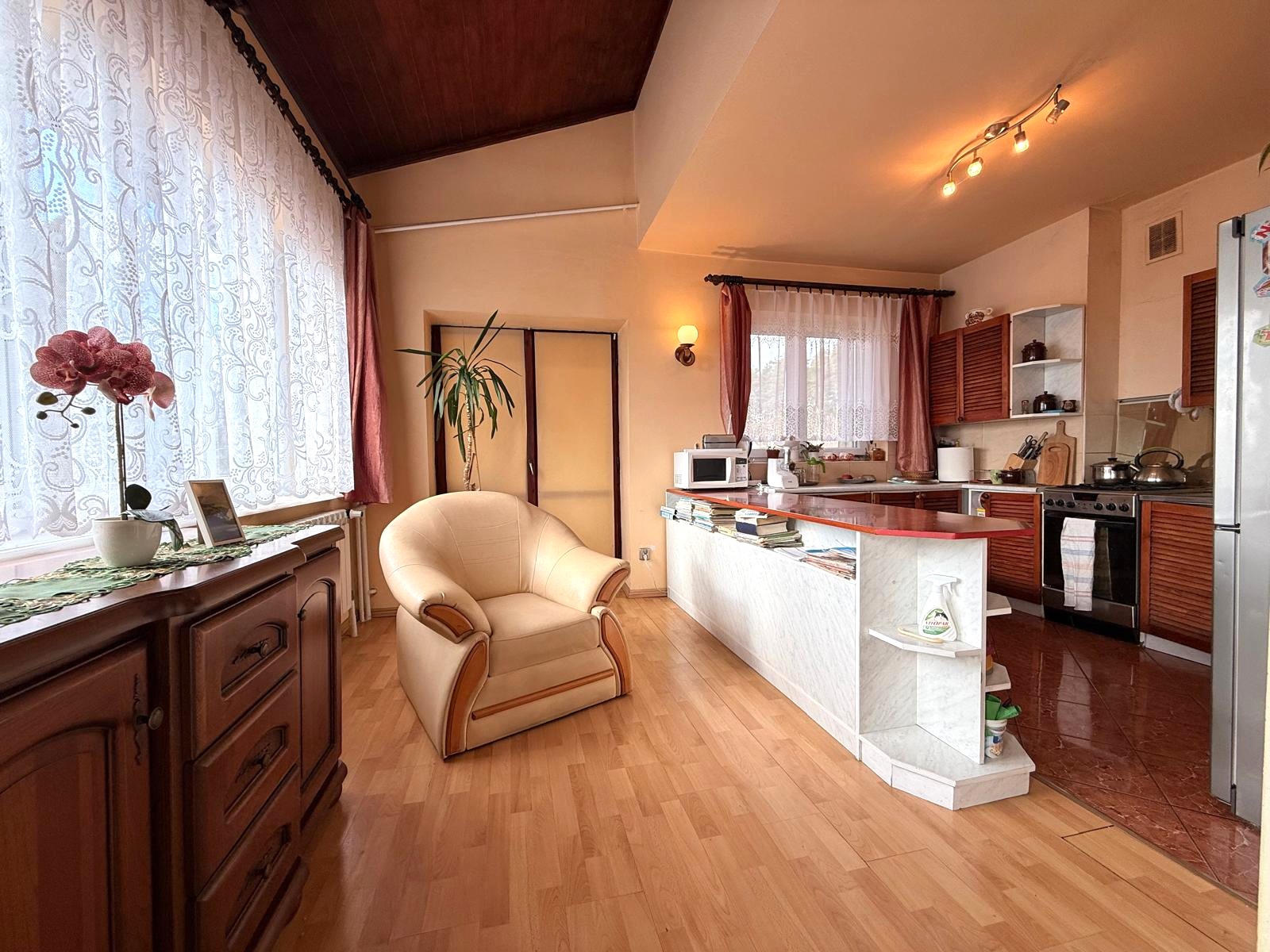 Dom z 1990 roku, zadbany, w połowie podpiwniczony. Idealny dla rodziny szukającej spokoju, bez rezygnacji z bliskości miasta.