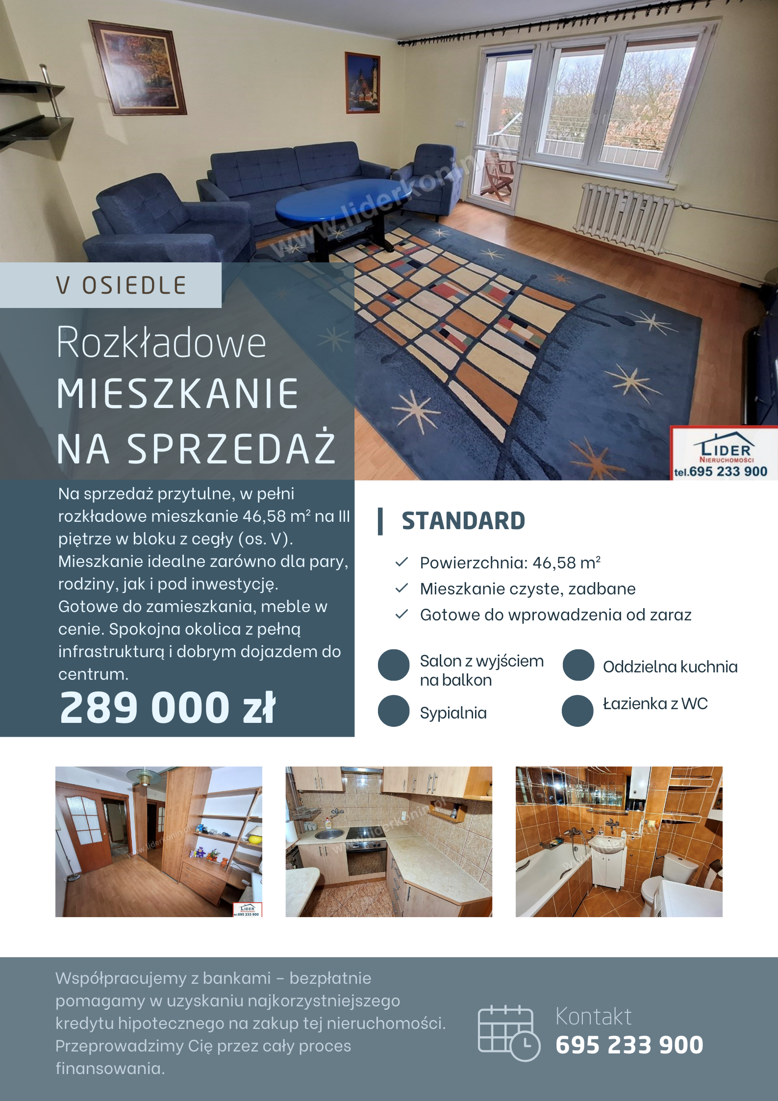 Reprezentujemy banki – pomagamy w uzyskaniu kredytu hipotecznego na zakup tej nieruchomości.