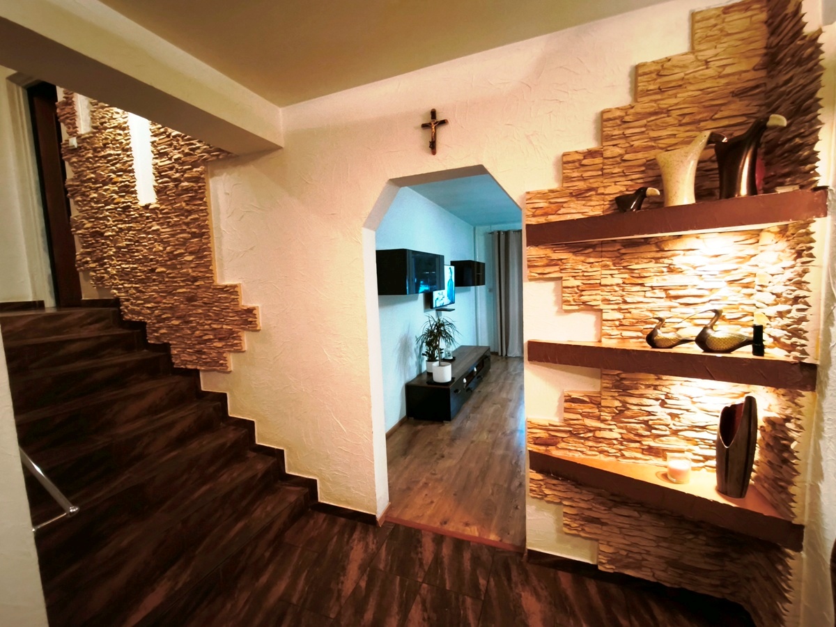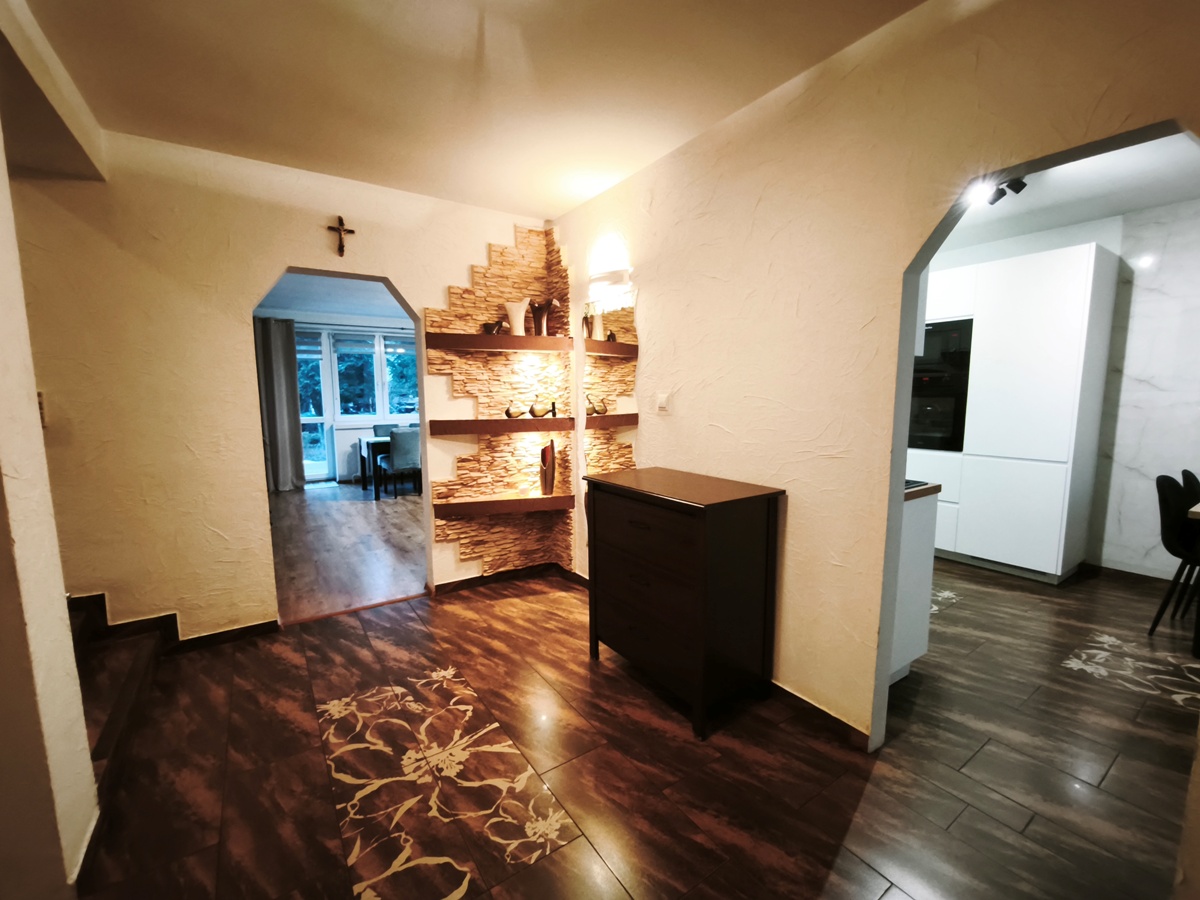 - półpiętro: 3 pokoje, łazienka;