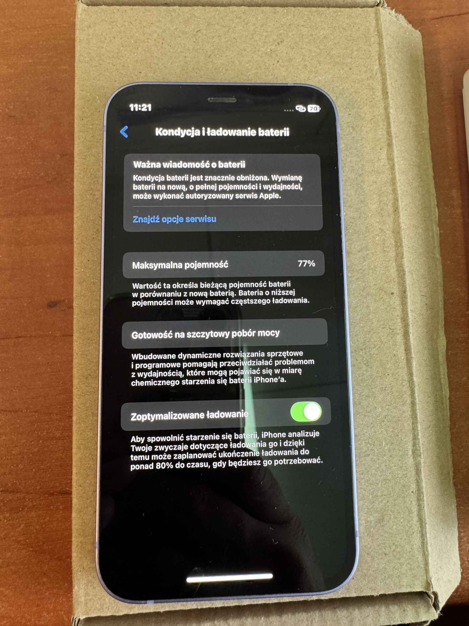 Mam do sprzedania IPhone 12 mini 64GB , telefon posiadam od nowości , wszystkie części są oryginalne i nigdy nie było nic naprawiane. Face ID itp sprawne. Kondycja baterii wynosi 77% , przy średnim użytkowaniu spokojnie wytrzyma cały dzień. iPhone 12 mini to idealny telefon dla osoby która lubi mniejsze i poręczne Iphone. Do telefonu dodaje oryginalne pudełko , etui , trzy nowe szkła hartowane, oryginalną ładowarkę apple oraz oryginalne Słuchawki Apple