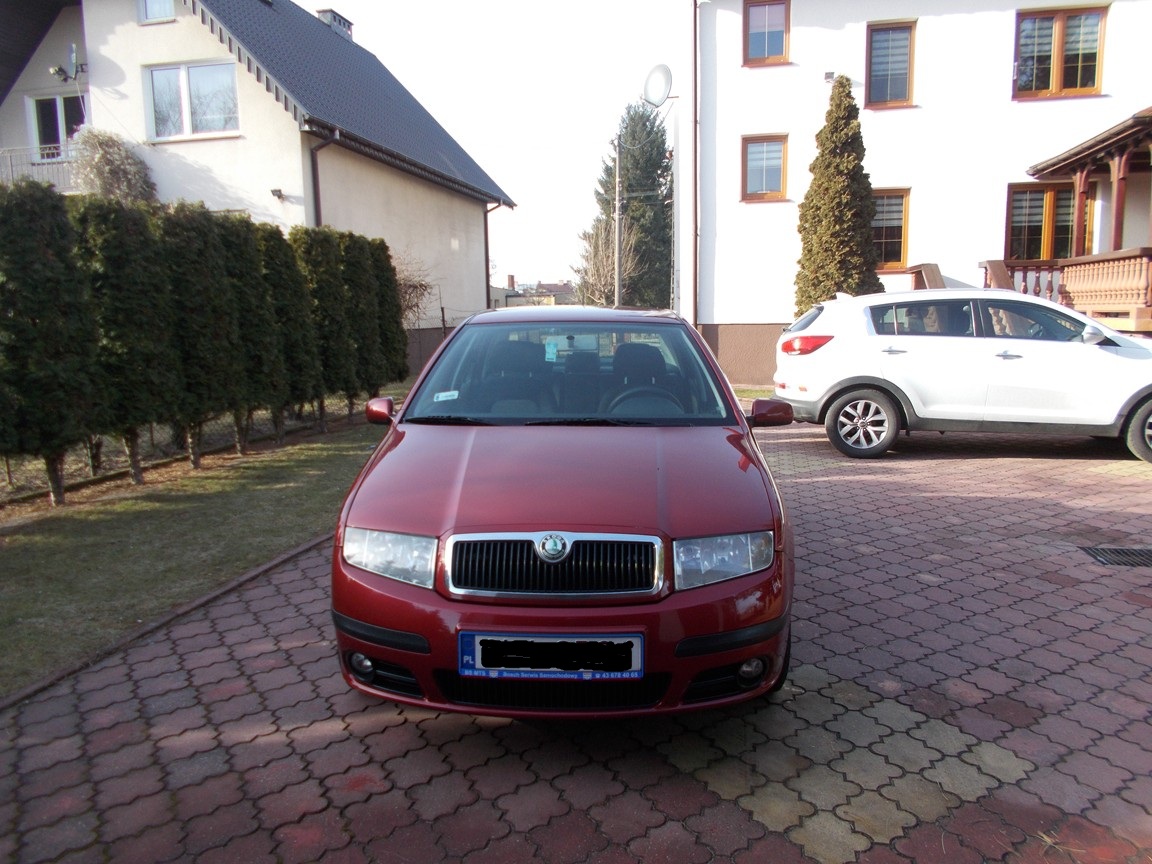 SKODA FABIA 1,2 kat. benzyna, rok produkcji listopad 2007 r., ( model po LFCIE ), przebieg 190 tys. km , kolor bordowy metalik, sedan, 4 drzwi, immobiliser, wspomaganie kierownicy, cztery poduszki powietrzne, halogeny, ABS, sprawna KLIMATYZACJA, centralny zamek z pilotem, elektryczne szyby, elektryczne lusterka, klimatyzowany schowek, czujniki parkowania, regulacja kierownicy, regulacja siedzenia kierowcy, bardzo ładna tapicerka, radio, dodatkowo komplet kół letnich. Samochód kupiony w salonie w Polsce, zarejestrowany, dwa kluczyki. Auto ładnie się prezentuje, jest bezawaryjne i funkcjonalne, oszczędne w paliwie oraz w bardzo dobrym stanie technicznym.