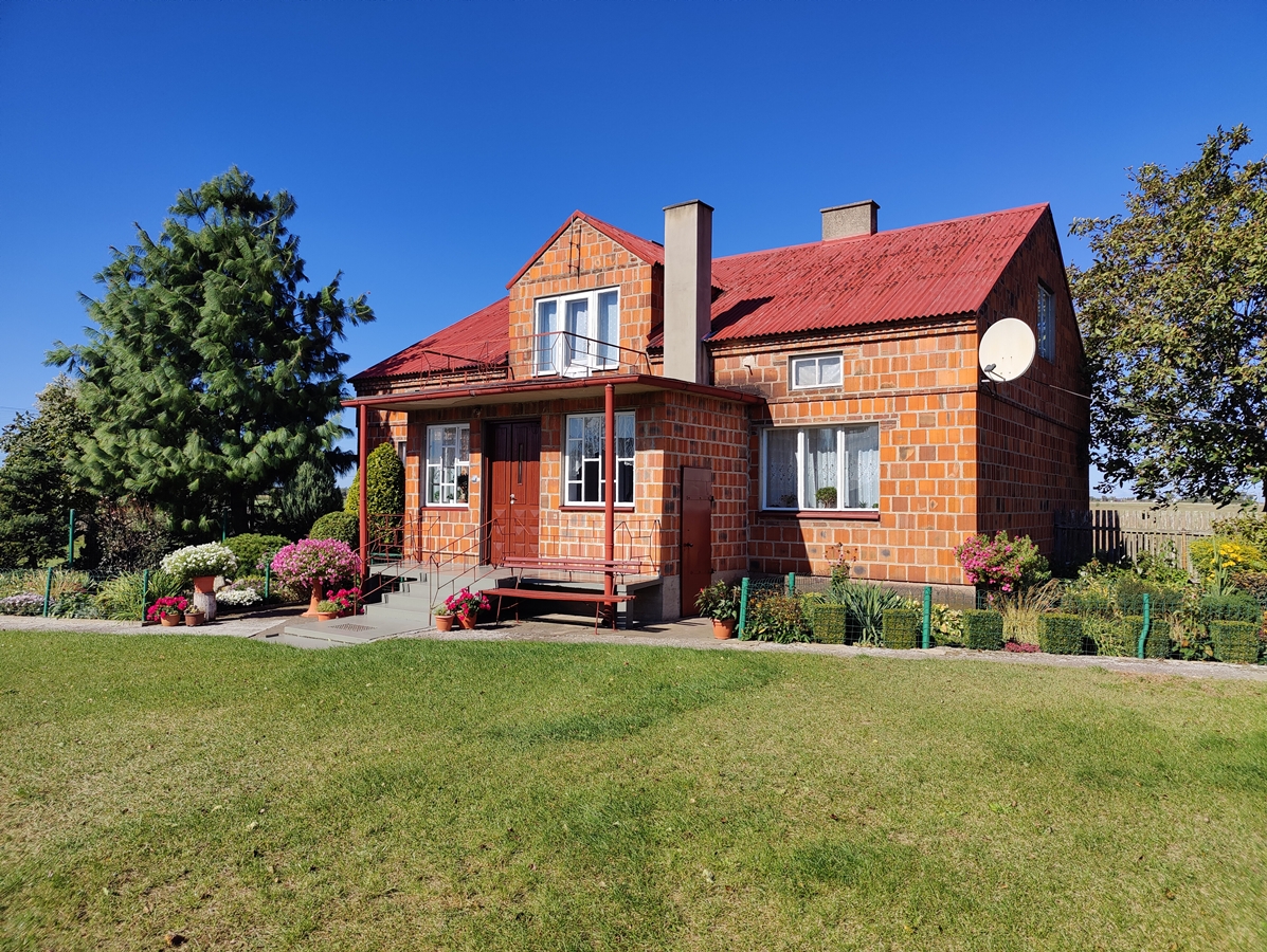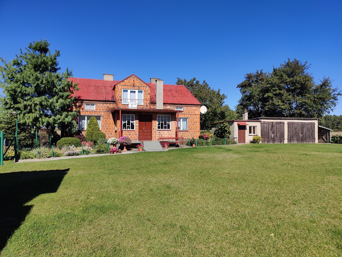 Budynek mieszkalny, w zabudowie wolnostojącej, parterowej, o powierzchni ok. 111 m2, z możliwością adaptacji poddasza. Budynek murowany dwuwarstwowo z cegły ceramicznej szczelinowej, ocieplony pianą izolacyjną pomiędzy dwoma warstwami cegły. Stolarka okienna drewniana. Dach pokryty blachą.