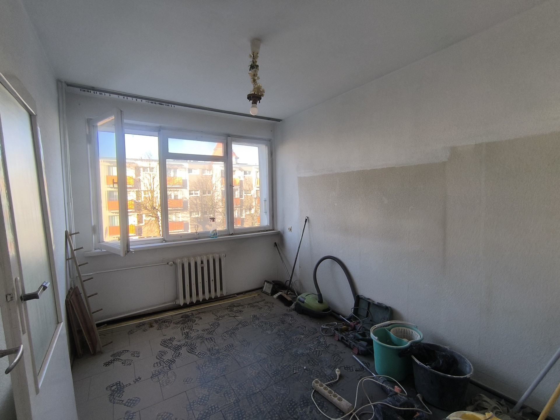 Mieszkanie do generalnego remontu. Rozpoczęto wymianę instalacji elektrycznej i wodno-kanalizacyjnej., tynkowanie ścian.