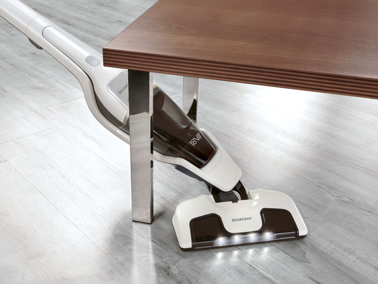 wyjmowany odkurzacz ręczny – do swobodnego korzystania jako urządzenie ręczne 2 poziomy prędkości przy zastosowaniu jako odkurzacz podłogowy: high, tryb ECO wbudowany, wydajny akumulator litowo-jonowy (18 V/2200 mAh) silnik DC 18 V napędzana silnikiem szczotka ssąca filtr do drobnych i większych cząstek można przemywać