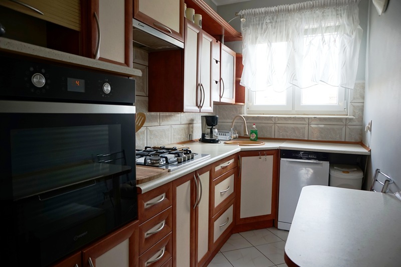 Lokal jest w pełni umeblowany oraz wyposażony w niezbędny sprzęt AGD: lodówkę, piekarnik elektryczny, pralkę automatyczną oraz zmywarkę.