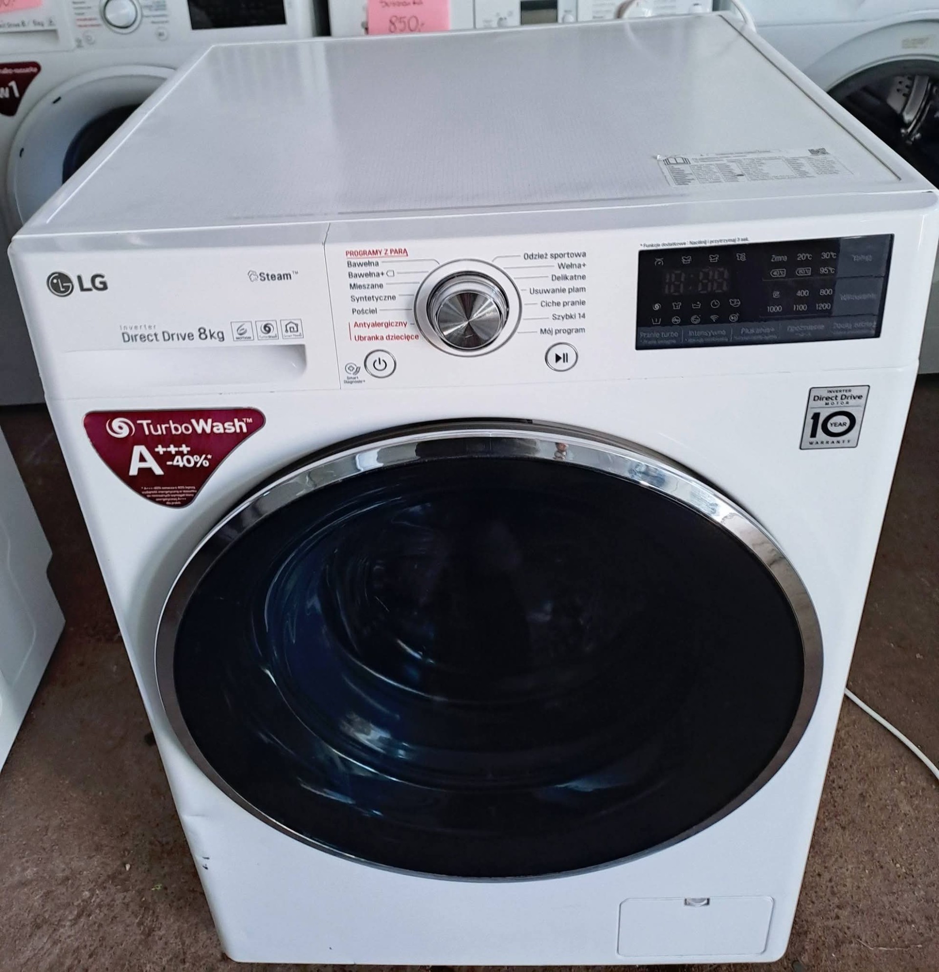 Sprzedam pralke z funkcją pary firmy LG. Wsad 8kg. Maksymalna ilość obrotów wirowania 1200/min. Klasa energetyczna A+++. Silnik inwenterowy. Automatyka wagowa. Programy takie jak szybki, ciche pranie, mieszane, pościel itd. Funkcja dodaj odzież. Blokada rodzicielska. Opóźniony start. Sygnał dźwiękowy. Pralka w pełni sprawna. Stan bardzo dobry.
