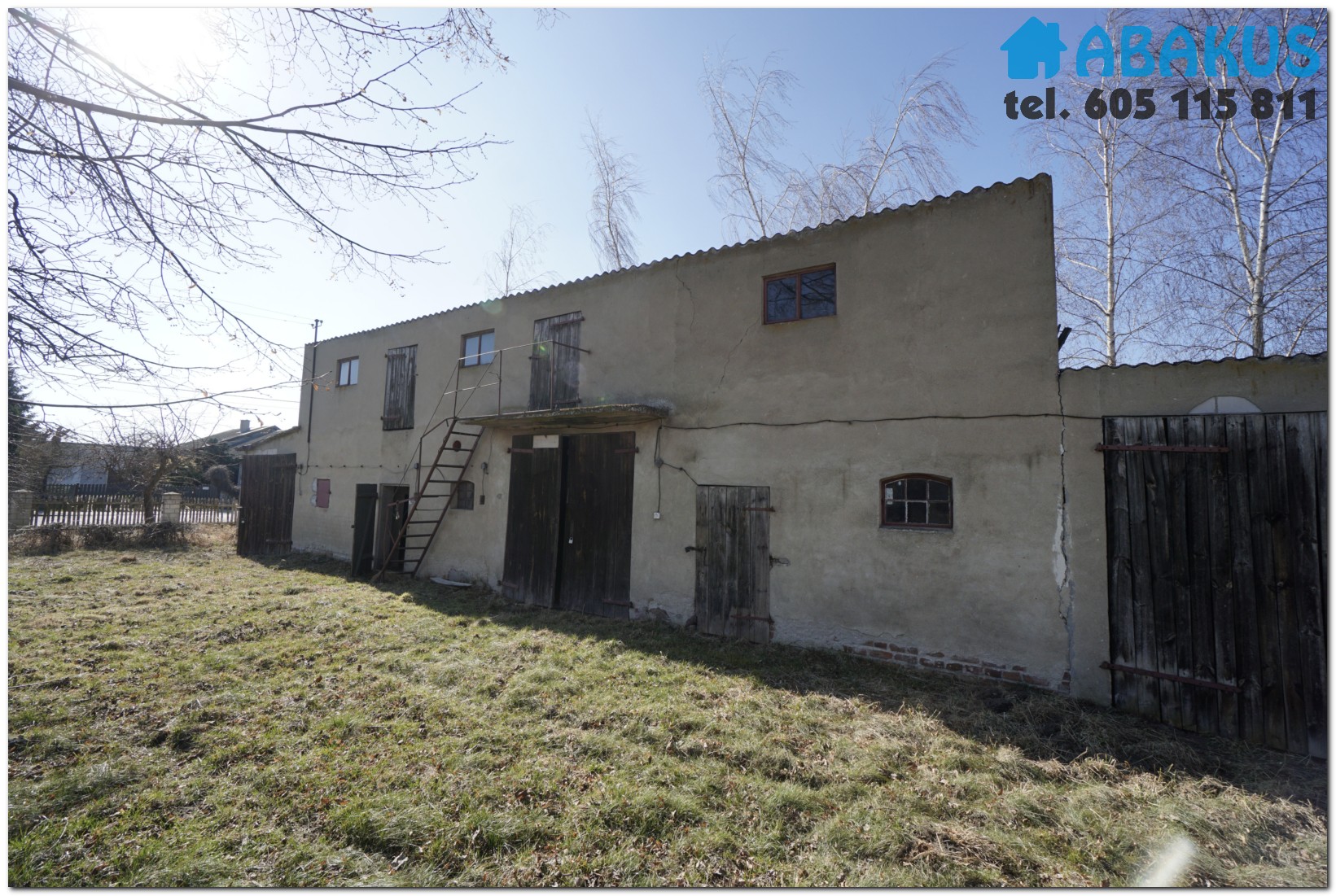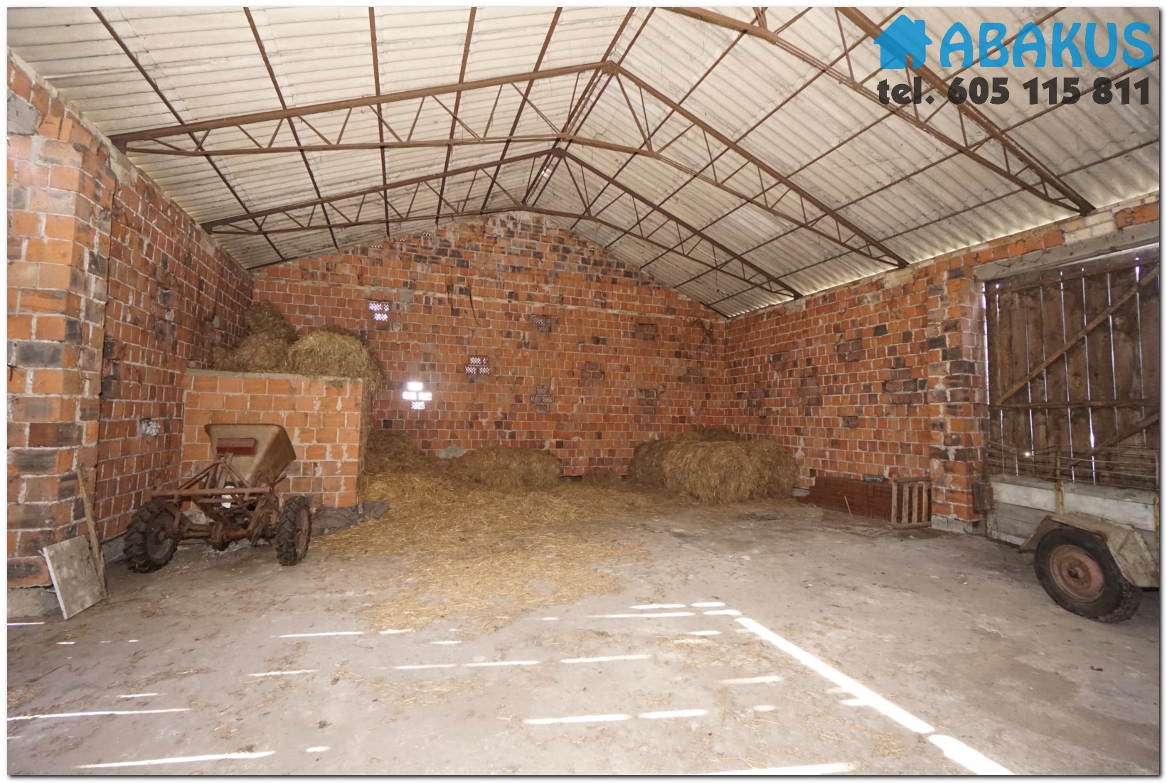 - budynek stodoły o pow. 250 m2 murowany składający się z pomieszczenia składowego oraz pomieszczeń gospodarczych, częściowo ze stropem betonowym, dach konstrukcji stalowej kryty eternitem, posadzki betonowe, tynki cementowo-wapienne.