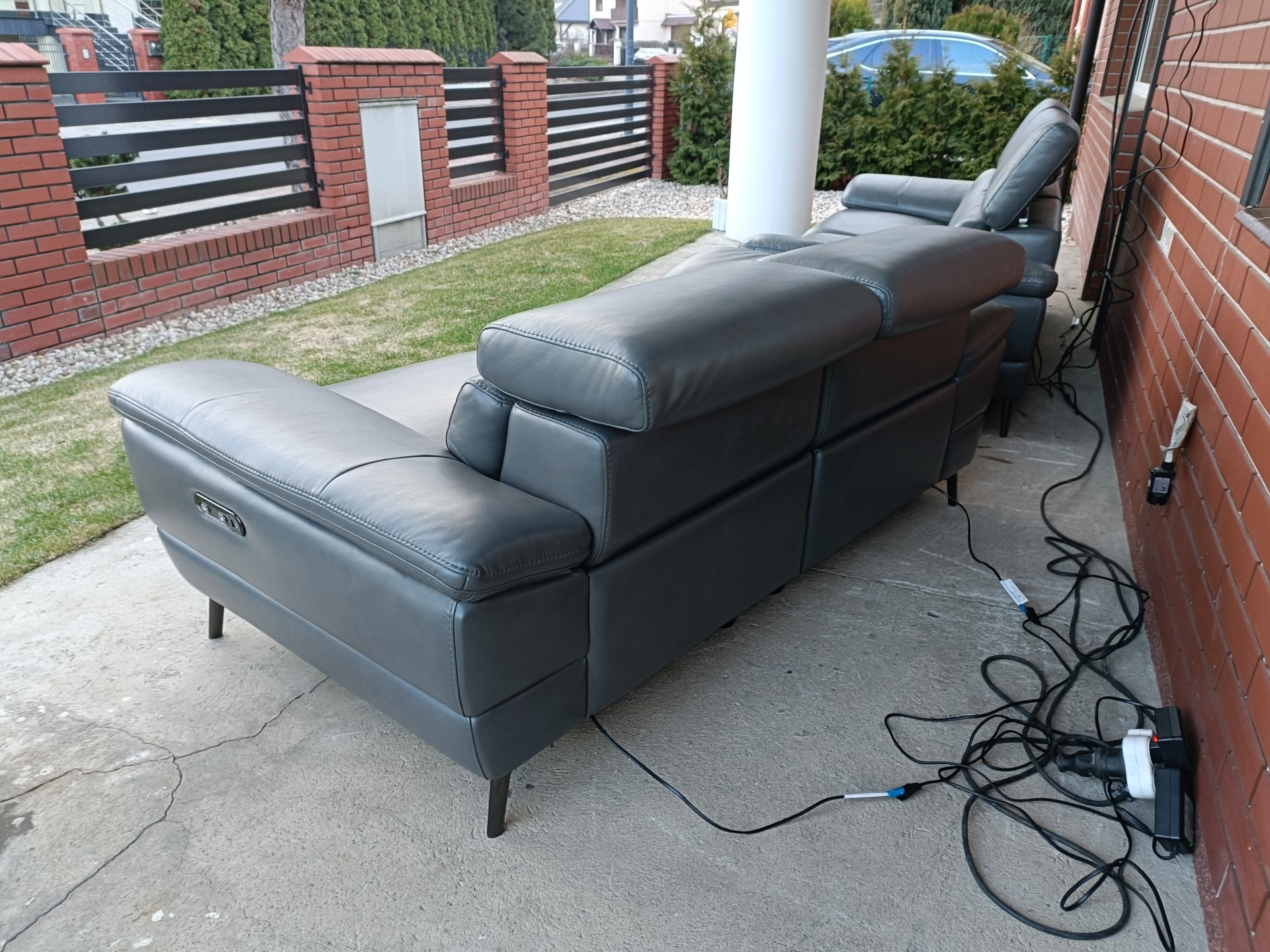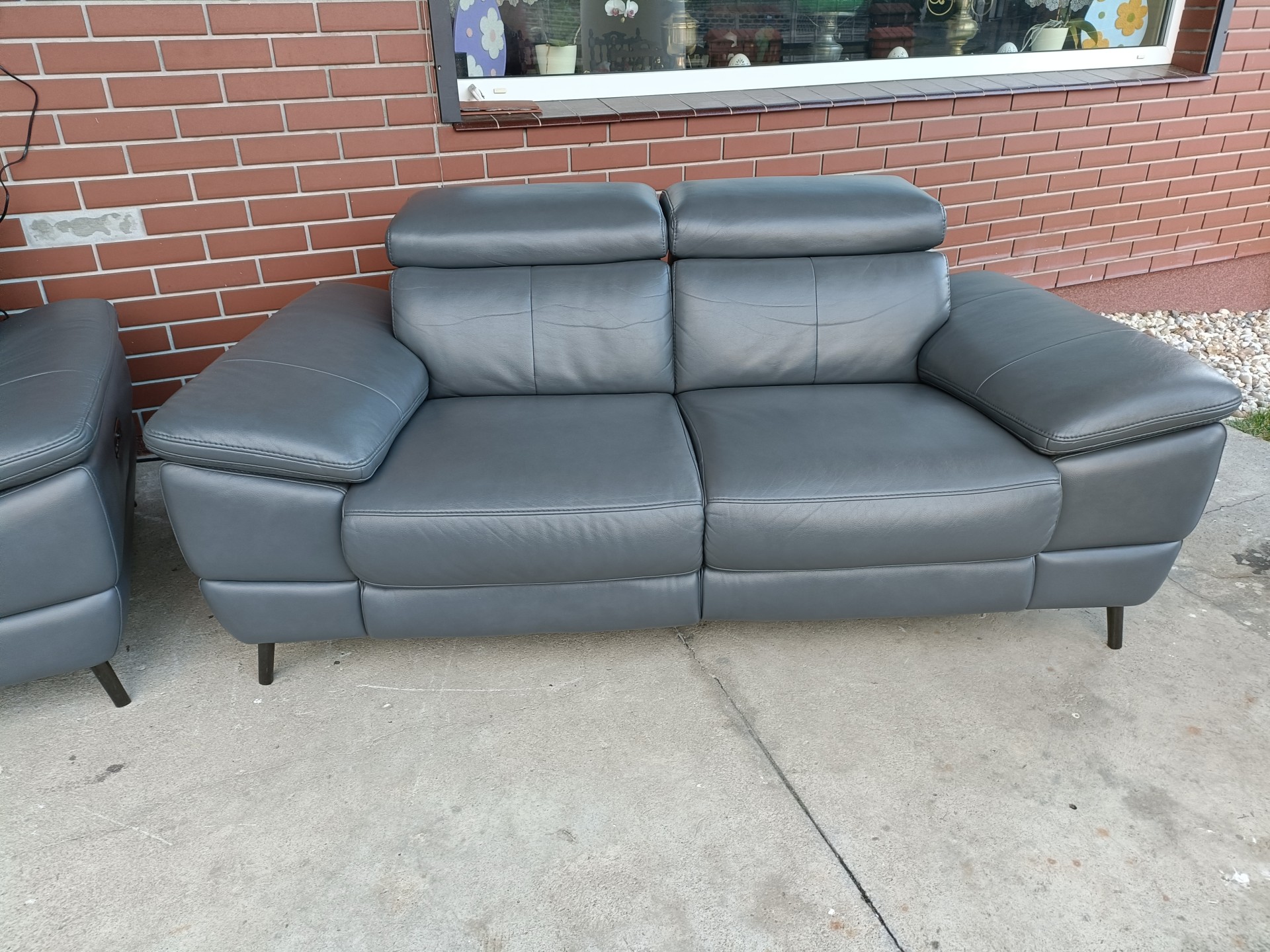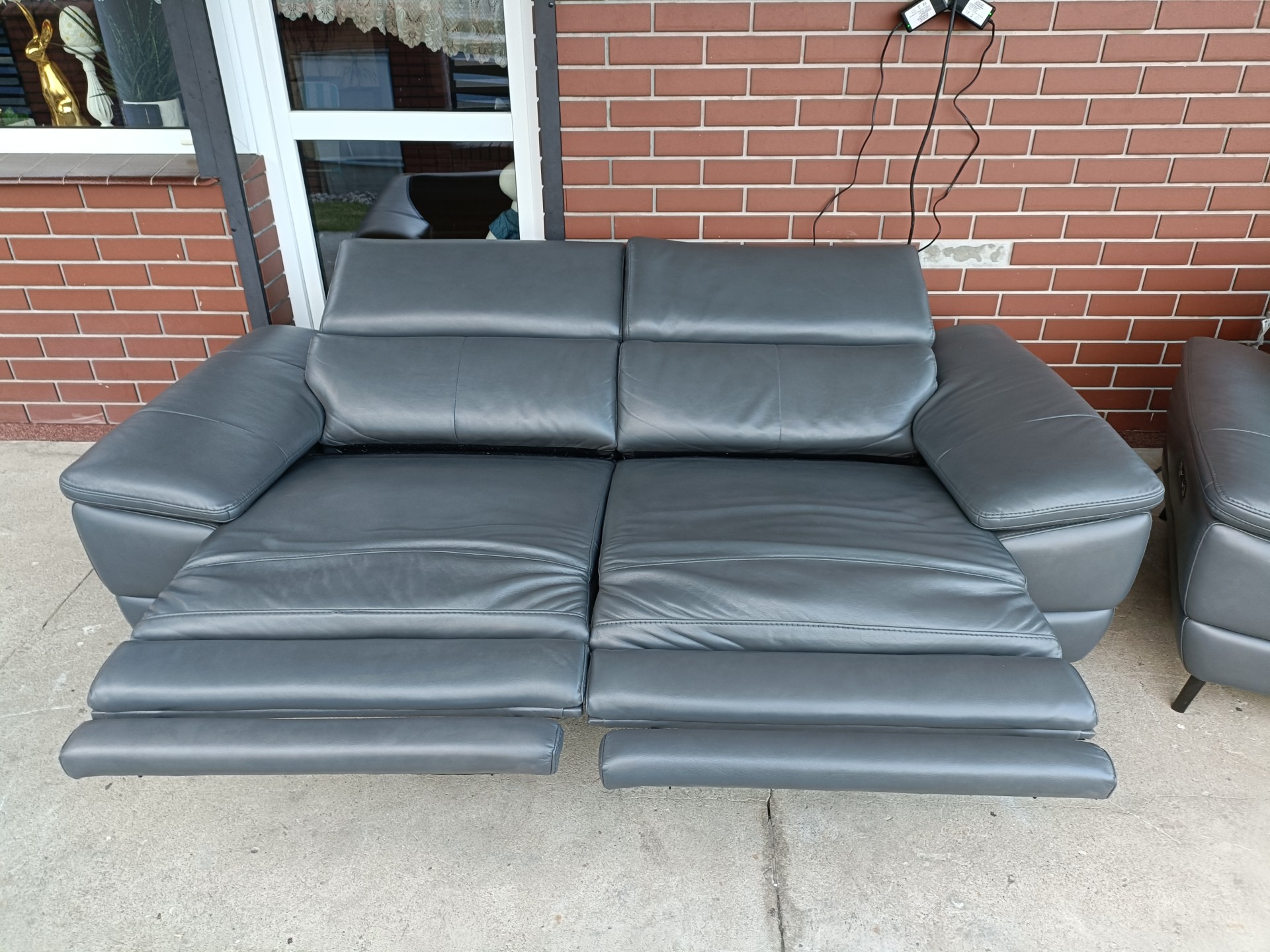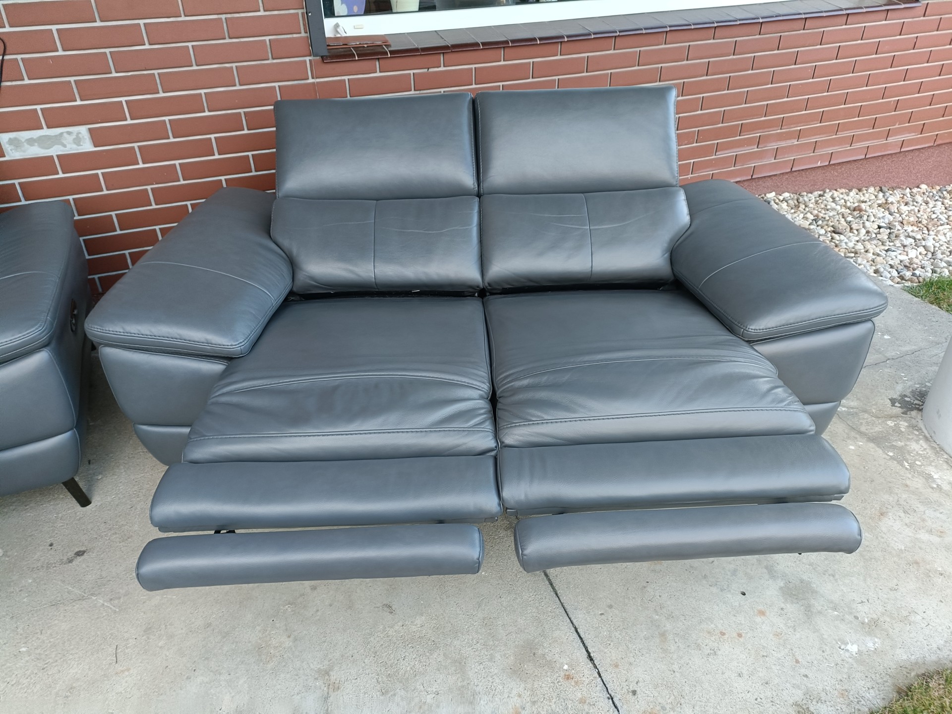 Sprzedam dwie sofy ze skóry 2,3 osobowa kolor ciemny popiel wymiary sofa 2 osobowa 1,80 sofa 3 osobowa 2,10 sofy poosiadają elektryczną funkcję relaks i regulowane zagłówki