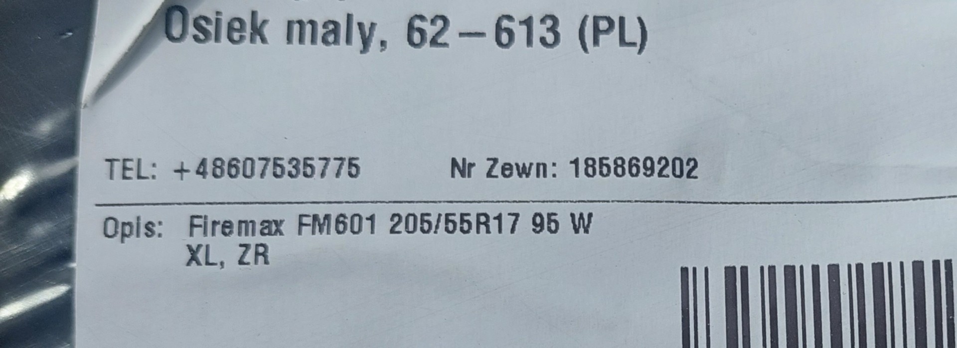 Witam. Mam do sprzedania 4-ry nowe letnie opony FIREMAX 205/55/17. Zapakowane,nie uzywane. Sprzedaje tylko dlatego bo zamowilem nie ten rozmiar. Cena 750 zl. Tel 607 535 775. Osiek Maly blisko Kola.
