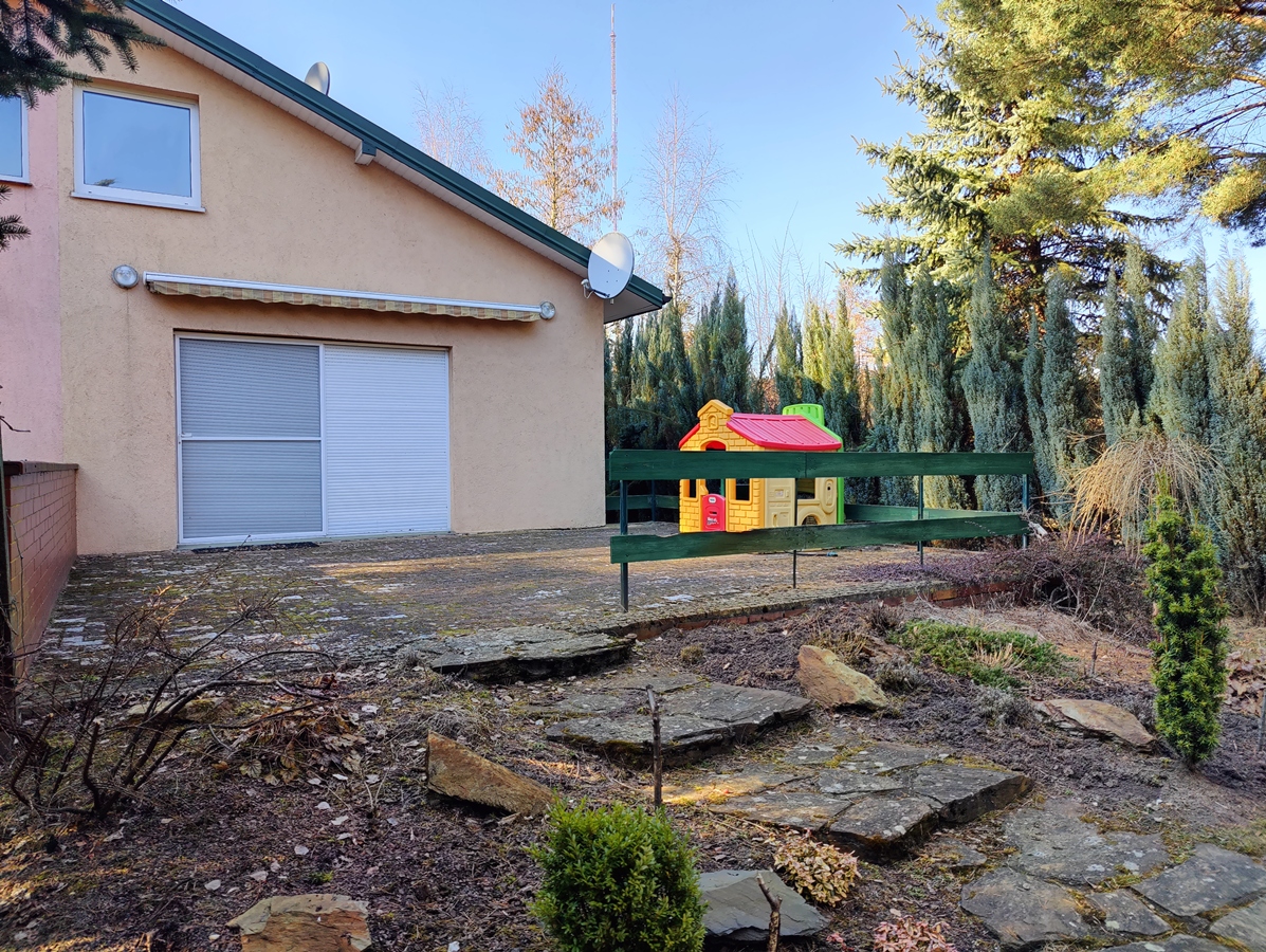Media: prąd, woda ze studni głębinowej, możliwość przyłączenia wody z gminnej sieci wodociągowej, kanalizacja z sieci gminnej, zamontowany elektryczny ogrzewacz wody pojemności 80 l., automatyczny system podlewania działki.