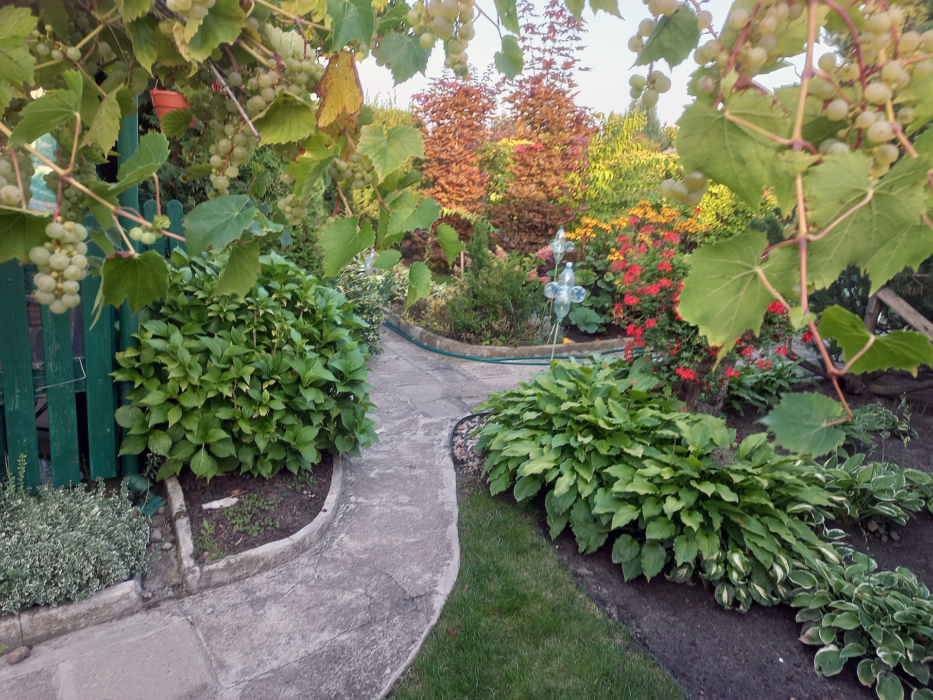 - „spożywcze nasadzenia”: jagody kamczackie, jabłonki, maliny (owocują do listopada!), różne gatunki winogron, zioła.