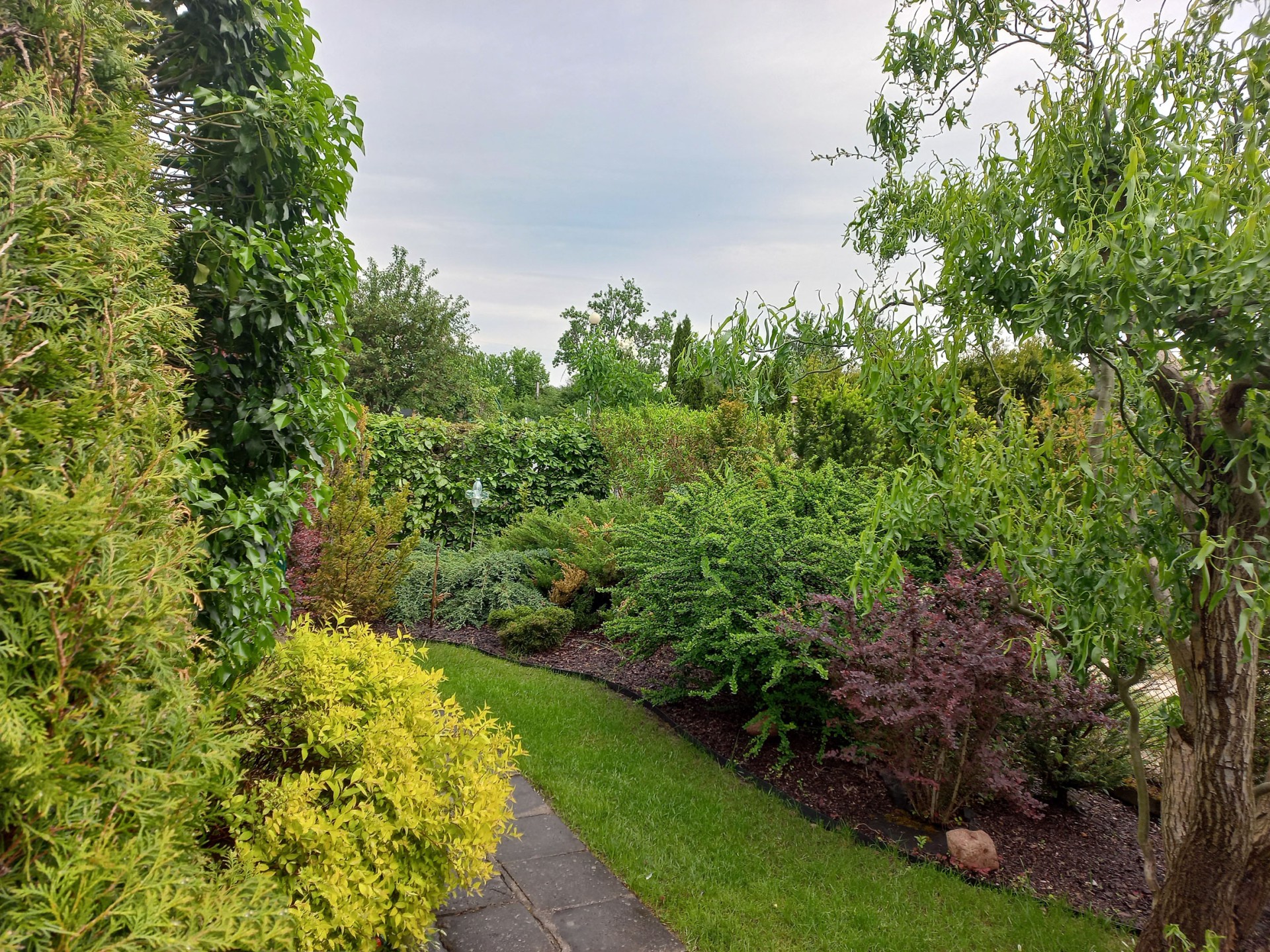 - bogate i różnorodne ozdobne nasadzenia: ponad 40-letni cis, kosodrzewina, jałowce, tuje, graby, klony, forsycje, funkie, róże, piwonie, hortensje, krzewuszka, kalina i inne…;