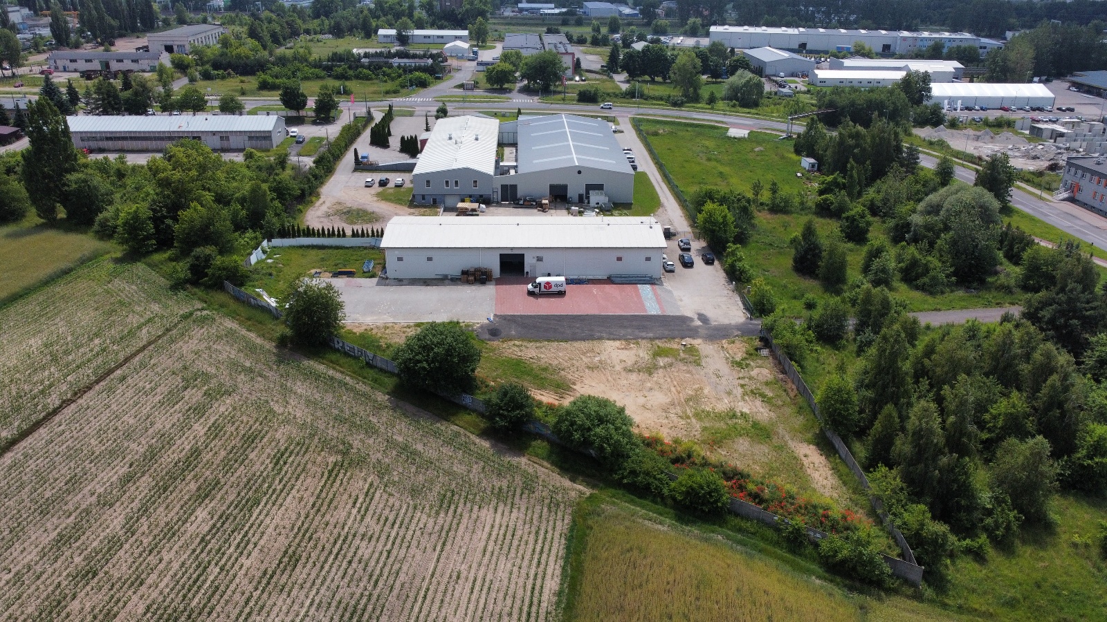W skład oferowanej nieruchomości wchodzi również ogrodzona i w dużej części utwardzona działka na której posadowiony jest budynek. Powierzchnia działki to blisko 5300 m2, a utwardzony plac zajmuję powierzchnię około 2500 m2.
