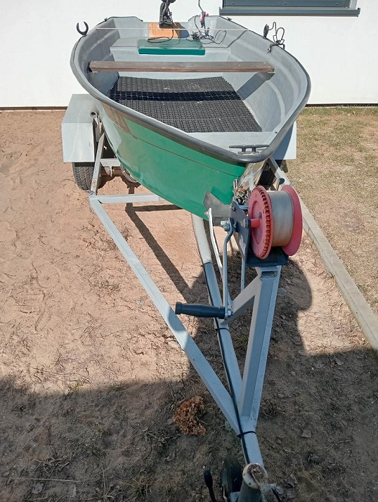 Całość sprzedaję z przyczepą, która posiada wciągarkę ręczną z przekładnią i pasem o długości 15m. Przyczepa zarejestrowana i opłacona.