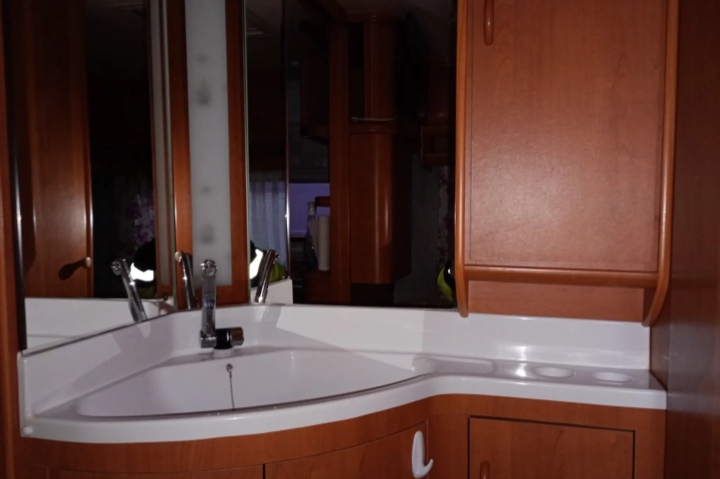 Wyposażenie: przedsionek Isabella, prysznic, toaleta kasetowa, zbiornik na czystą i szarą wodę, telewizor, rozkładana podkowa, łóżko sypialniane, ogrzewanie, ciepła woda, kuchenka gazowa, lodówka, zlewozmywak, umywalka, uchwyt na dwa rowery,