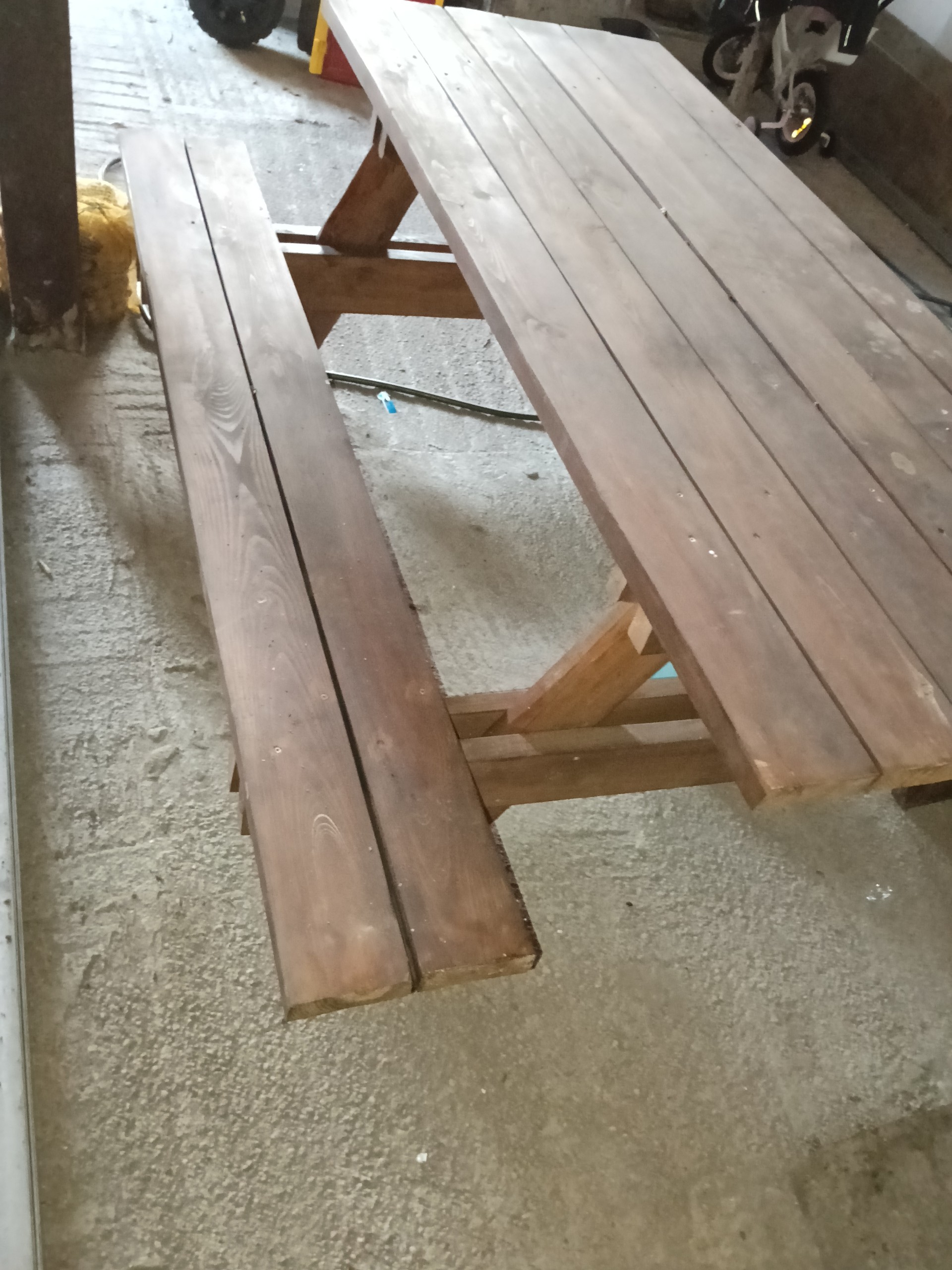 Witam posiadam na sprzedaż stół piknikowy duży masywny wymiary stołu długość 200 cm szerokość 80 cm wymiary ławki długość 200 cm szerokość 27 cm