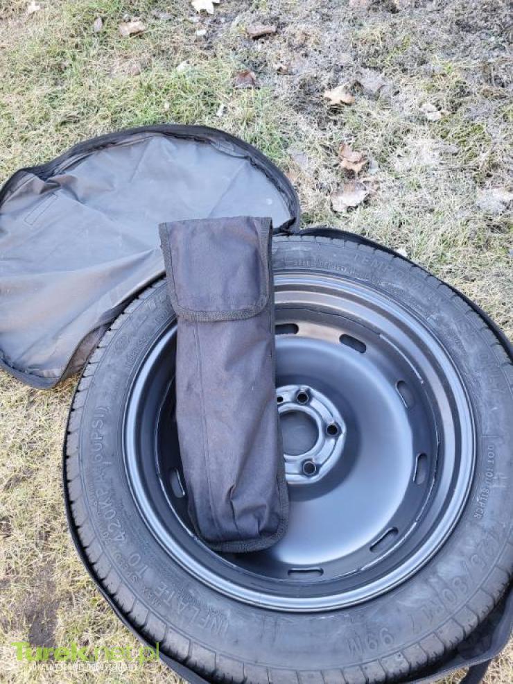 Sprzedam kolo dojazdowe zapasowe R 17 do mercedesa + zestaw do wymiany ,pokrowce. Stan nowe nie używane.