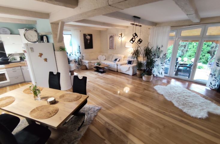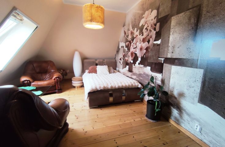 Zapraszam do zapoznania się z ofertą sprzedaży nieruchomości gruntowej zabudowanej, zlokalizowanej w miejscowości Główiew przy ul. Kaliskiej w gminie Stare Miasto w odległości około 14 km (15 minut samochodem) od centrum Konina. Nieruchomość położona z dala od miejskiego zgiełku, w spokojnej miejscowości w sąsiedztwie nowo powstałych i istniejących budynków mieszkalnych, terenów niezabudowanych, łąk i pól uprawnych. Działka o powierzchni 2050 m2, na której posadowiony jest nowoczesny, wolnostojący, parterowy z poddaszem użytkowym budynek mieszkalny o powierzchni użytkowej 135.82 m2, drugi wolnostojący budynek, który wcześniej pełni rolę mieszkalnego, obecnie użytkowany na cele gospodarcze oraz dwa budynki garażowe. Budynek mieszkalny oddany do użytku w 2008 roku, budowany w technologii tradycyjnej, mury wykonane z pustaka ceramicznego, na zewnątrz ocieplone styropianem, otynkowane, fundament obłożony płytką klinkierową. Dach wielospadowy o nieregularnych kształtach, konstrukcji drewnianej, ocieplony wełną mineralną, kryty dachówką ceramiczną, rynny i rury spustowe z blachy tytan-cynk, obróbki blacharskie z blachy tytan. Stolarka okienna PCV, od zewnątrz w kolorze złoty dąb, od środka biała, dodatkowo zamontowane rolety zewnętrzne. Stan techniczny budynku został określony jako bardzo dobry. Budynek wyposażony w następujące instalacje: elektryczną, wodociągową- z sieci oraz własna studnia głębinowa, kanalizacyjną-przydomowa oczyszczalnia ścieków, centralnego ogrzewania (piec na ekogroszek), grzejniki, system wentylacji grawitacyjnej, grzejniki ścienne typu drabinka w łazienkach, panele fotowoltaiczne o mocy około 10 kw, stacja uzdatniania wody oraz kominek. Wewnątrz domu zostały wydzielone następujące pomieszczenia: Na parterze: przestrzenny salon (28,85 m2), kuchnia z jadaln... więcej na www.invicus.pl, oferta nr 4576.